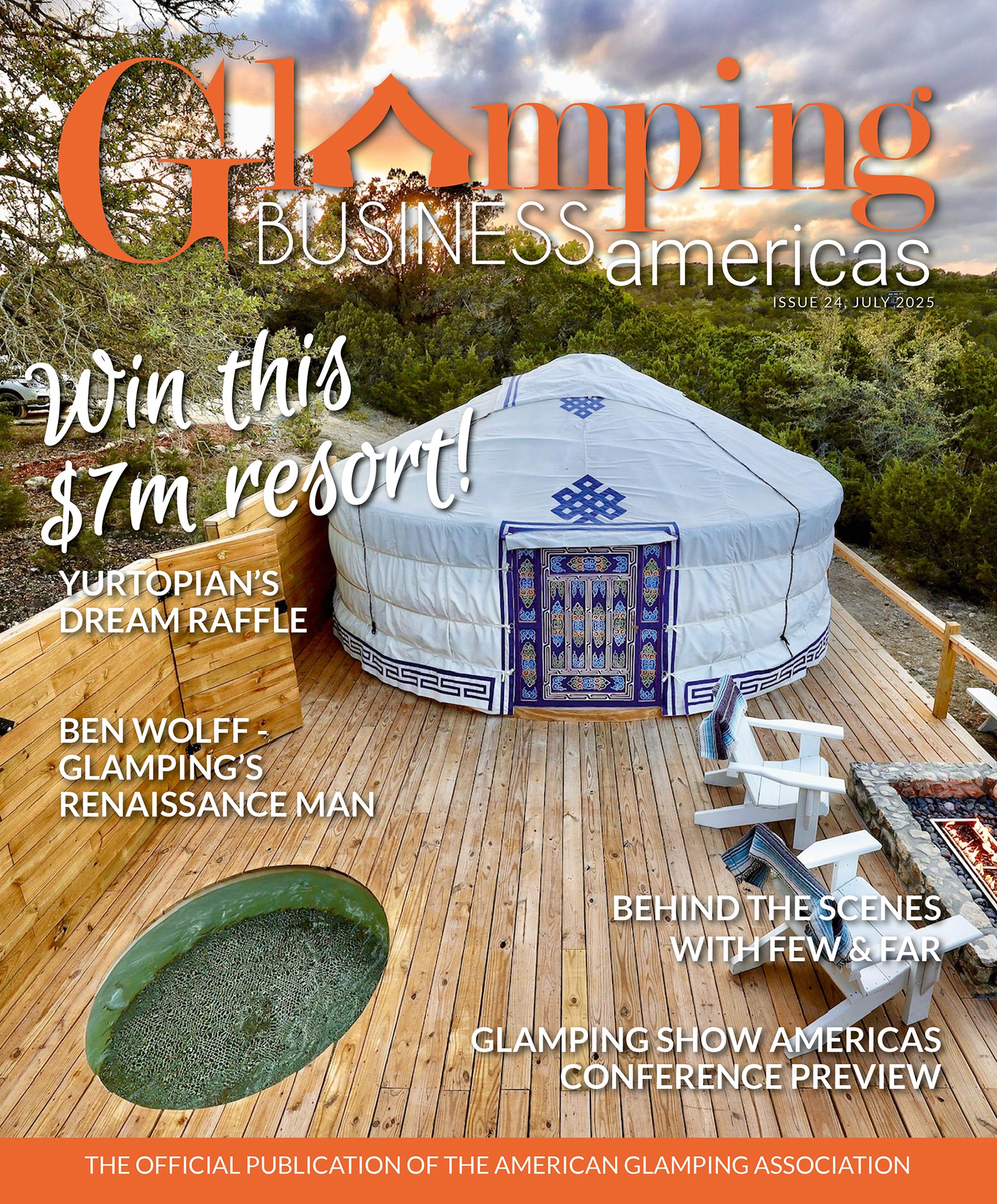Glamping Business Americas Magazine is a high-quality trade magazine with five issues annually and a circulation of more than 8,500 glamping industry readers across all the Americas. All issued are published digitally with the October issue also carried in print and distributed at the Glamping Show Americas event.