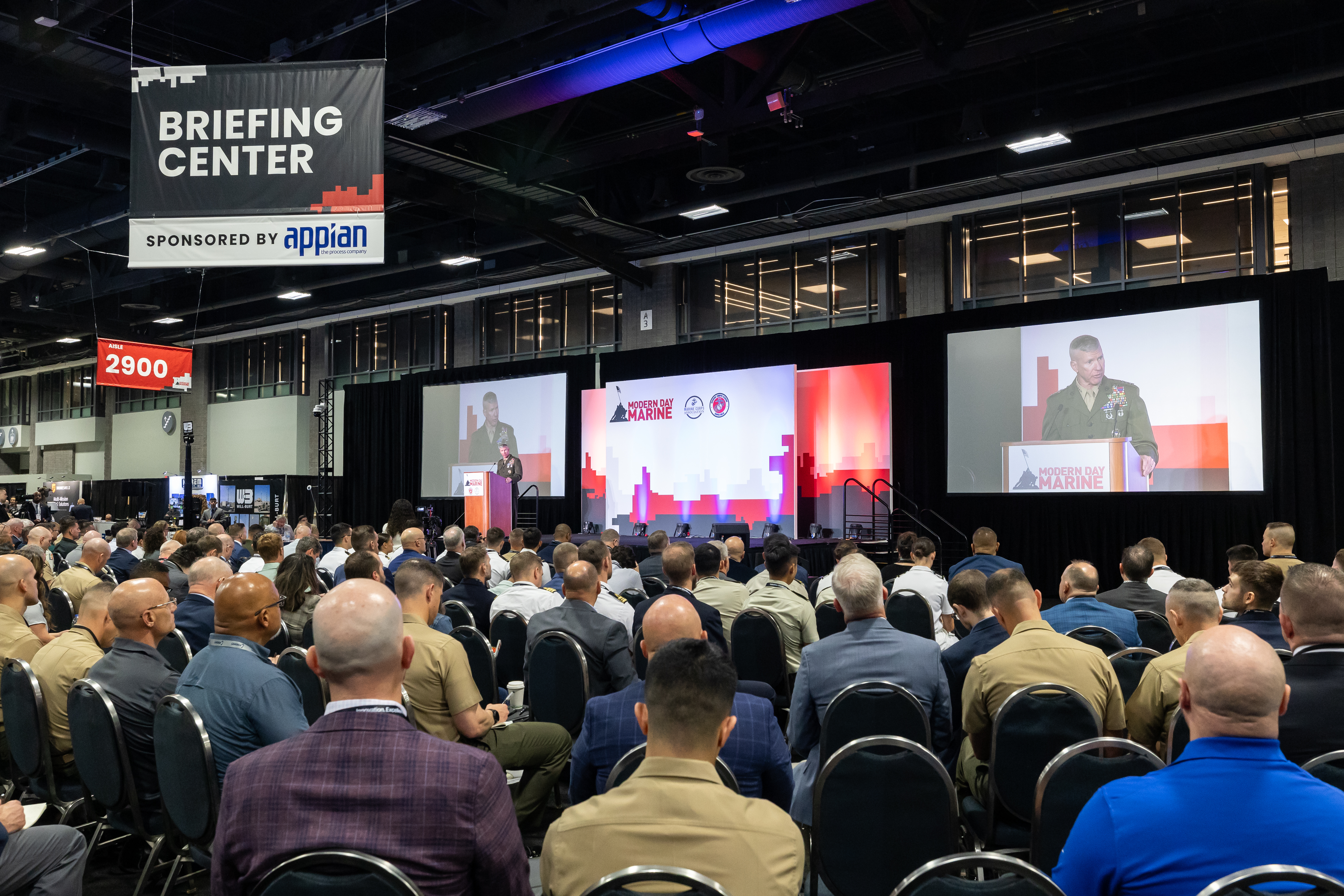 Stand out to attendees in the Main Briefing Center before the most anticipated presentation of the show, the Commandant of the Marine Corps briefing. $6,600