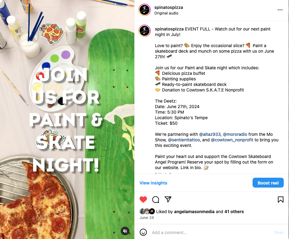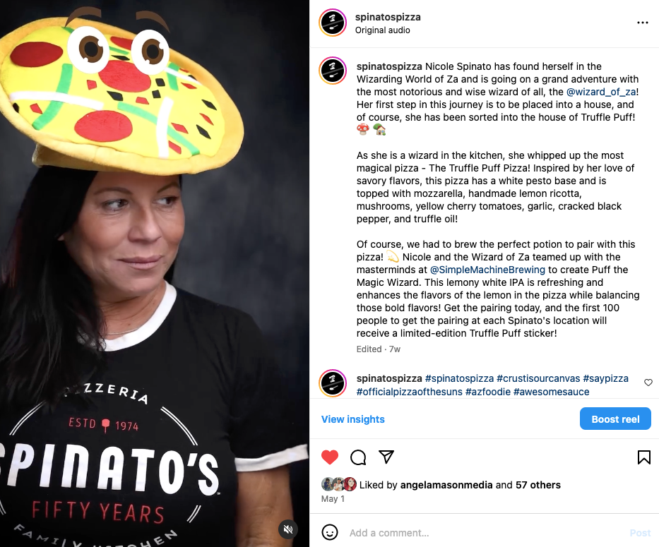 Spinato's Pizzeria leverages social media with vibrant campaigns and a strong visual identity, showcasing our family history and staff. Creative partnerships with brands like TMNT and Universal Studios have doubled our audience and boosted engagement by 750% in two years.