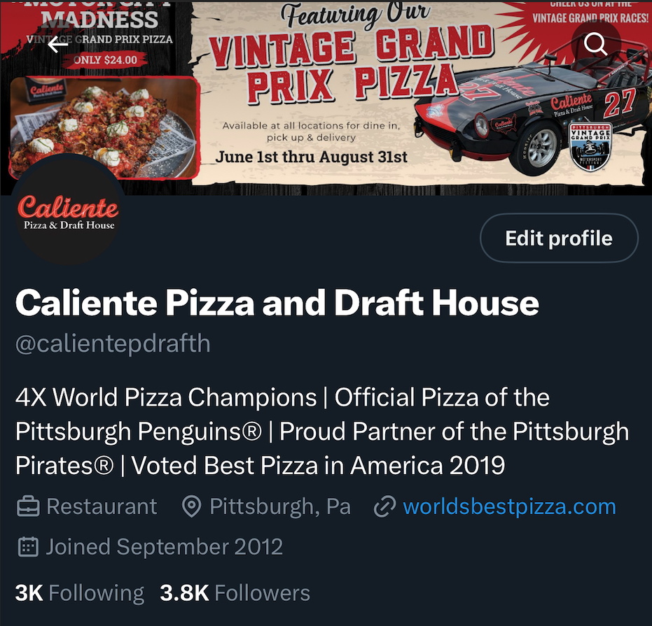 Caliente Pizza and Draft House uses social media as a huge part of ourmarketing plan. The company utilizes Facebook, X, Instagram, LinkedIn, TikTok and YouTube.