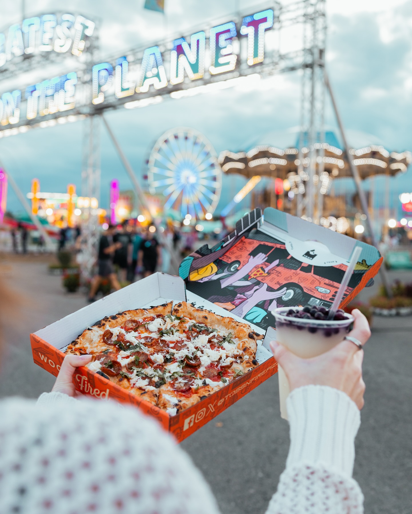 Toss & Fire turned their pizza boxes into a centerpiece of the 2025 New York State Fair experience with three exclusive, limited-edition designs created in partnership with The Pizza Bib. Each box captured the fair’s energy and culture with a playful Toss & Fire twist: a butter sculpture food truck, a roller coaster ride with wood-fired pizza, and a crowd-surfing food truck at Chevy Court. To amplify the fun, they launched a “Win Free Pizza for a Year” contest, sparking thousands of social media shares and making their boxes instantly recognizable across the fairgrounds. These bold, whimsical designs transformed customers into walking billboards, creating massive buzz and making Toss & Fire a standout part of the fair’s unforgettable experience.