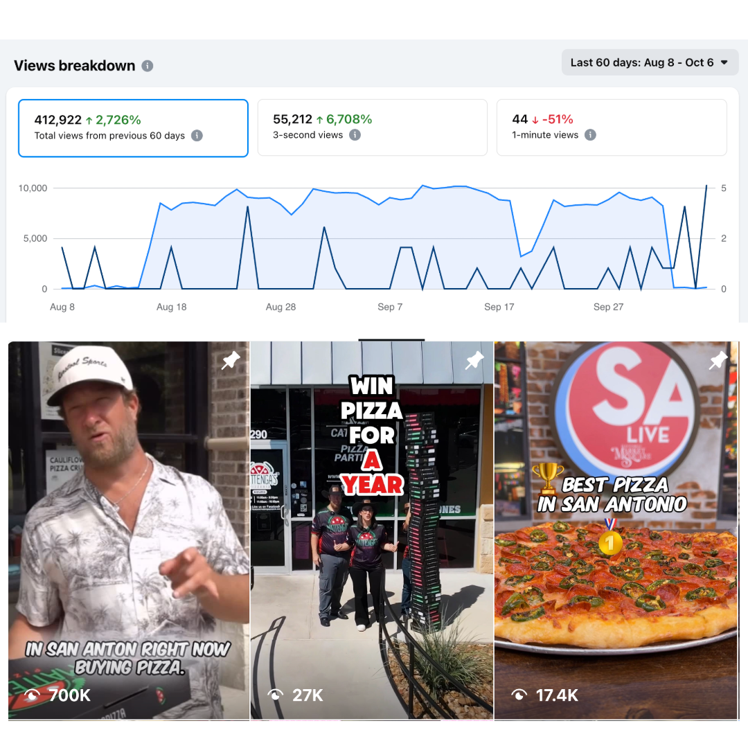 Mattenga’s Pizzeria has made social media the heartbeat of its brand, connecting the San Antonio community while driving sales and building a strong reputation. Every post reflects the pizzeria’s core values: warmth, community, excellence, and pride in serving the city. From celebrating local heroes to impactful campaigns like feeding 700 teachers or hosting fundraisers, Mattenga’s storytelling strikes a chord. In just 60 days, their content reached nearly 2 million viewers, generated over 4,000 email leads, and turned followers into loyal guests. Recognized as San Antonio’s Best Pizza and Small Business of the Year for three consecutive years, Mattenga’s proves that good pizza and good news go hand in hand.