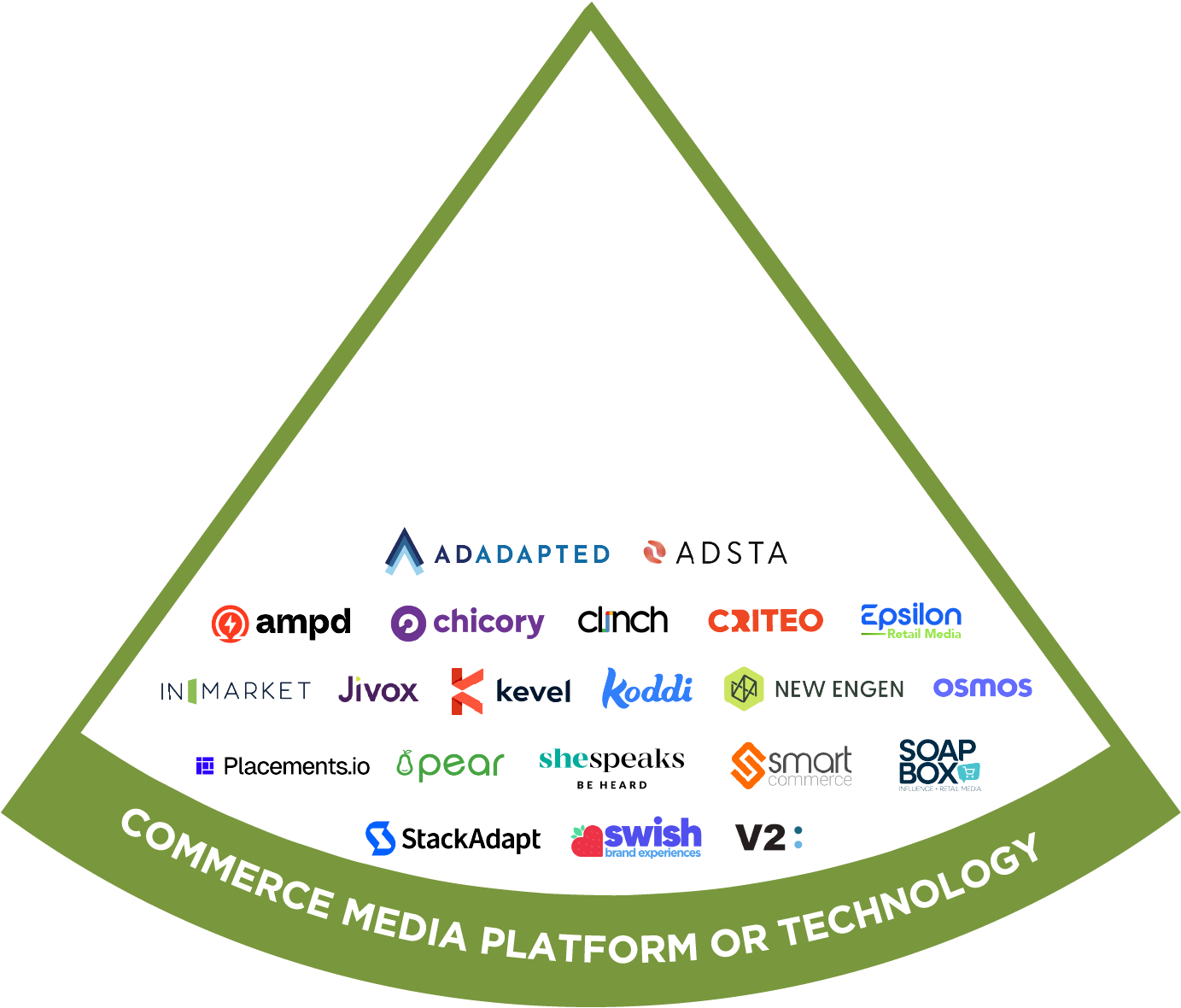 Commerce media platform or technology companies meet the unique needs of advertisers in today's complex omnichannel landscape, providing solutions for objectives such as planning and buying media, and helping monetize a publisher's or retailer's data and inventory. Spotlighted are only a few.