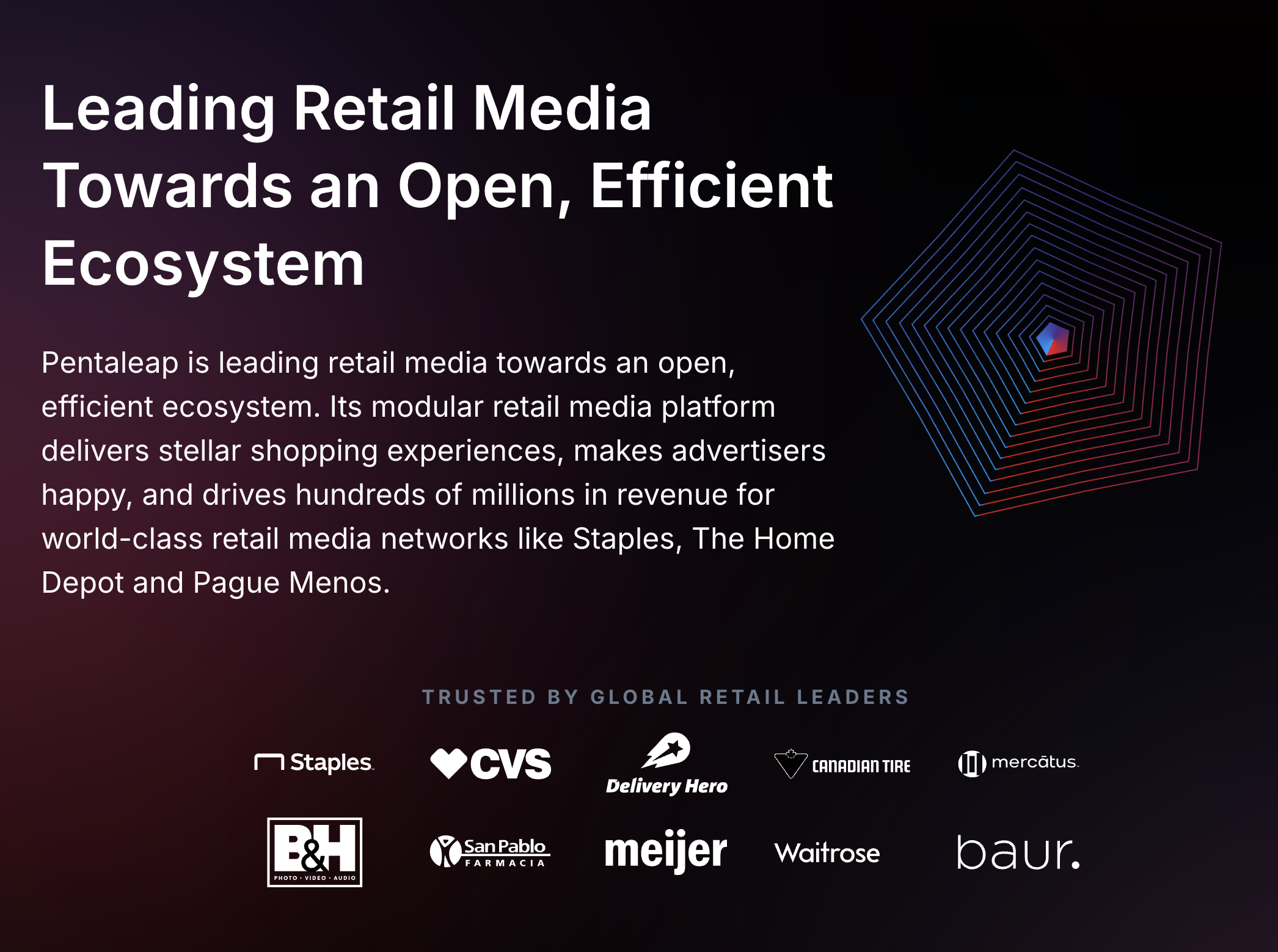 Pentaleap is leading retail media towards an open, efficient ecosystem. Its modular retail media platform delivers stellar shopping experiences, makes advertisers happy, and drives hundreds of millions in revenue for world-class retail media networks like Staples, The Home Depot and Pague Menos. For more information, visit www.pentaleap.com