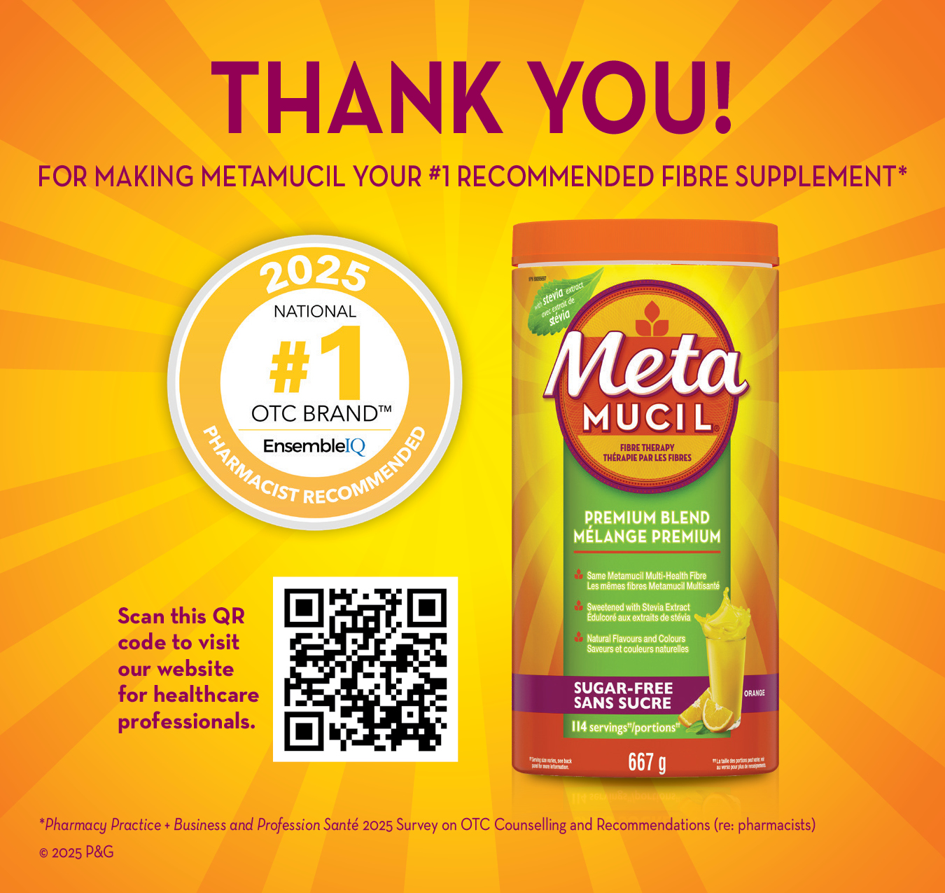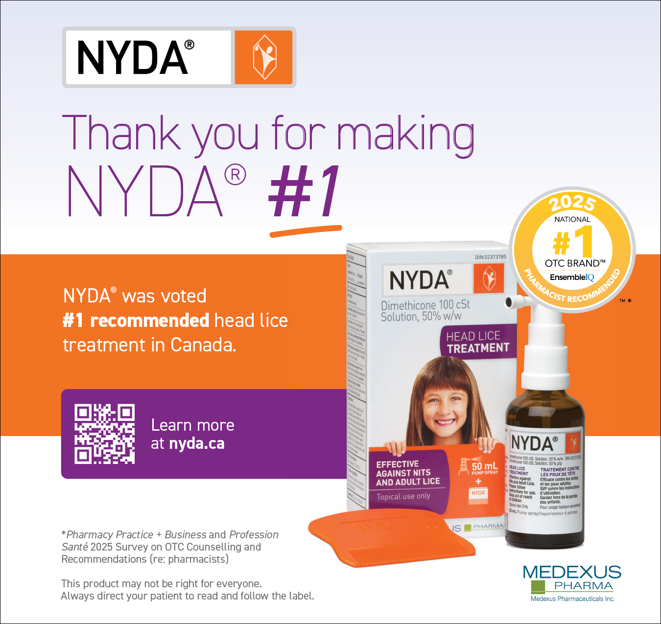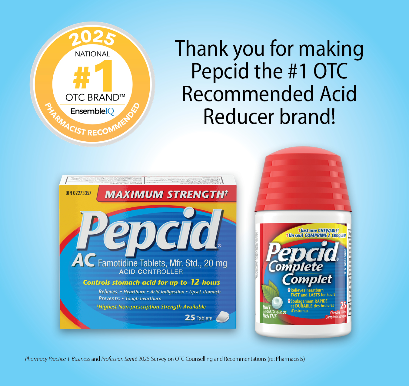 Only the OTC products voted #1 most-recommended brands by pharmacists in the Pharmacy Practice + Business Survey on OTC Counselling & Recommendations may use this logo or claim to be “Pharmacists’ most recommended brand.”
