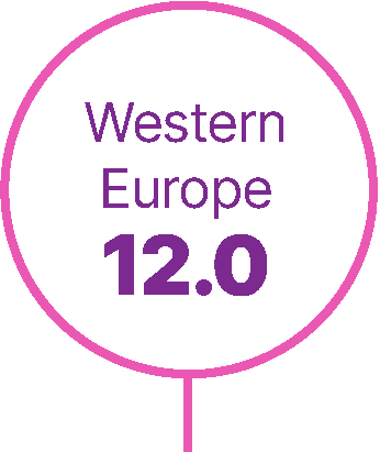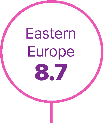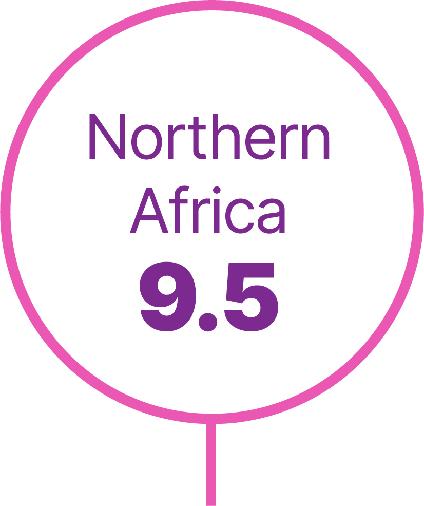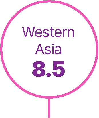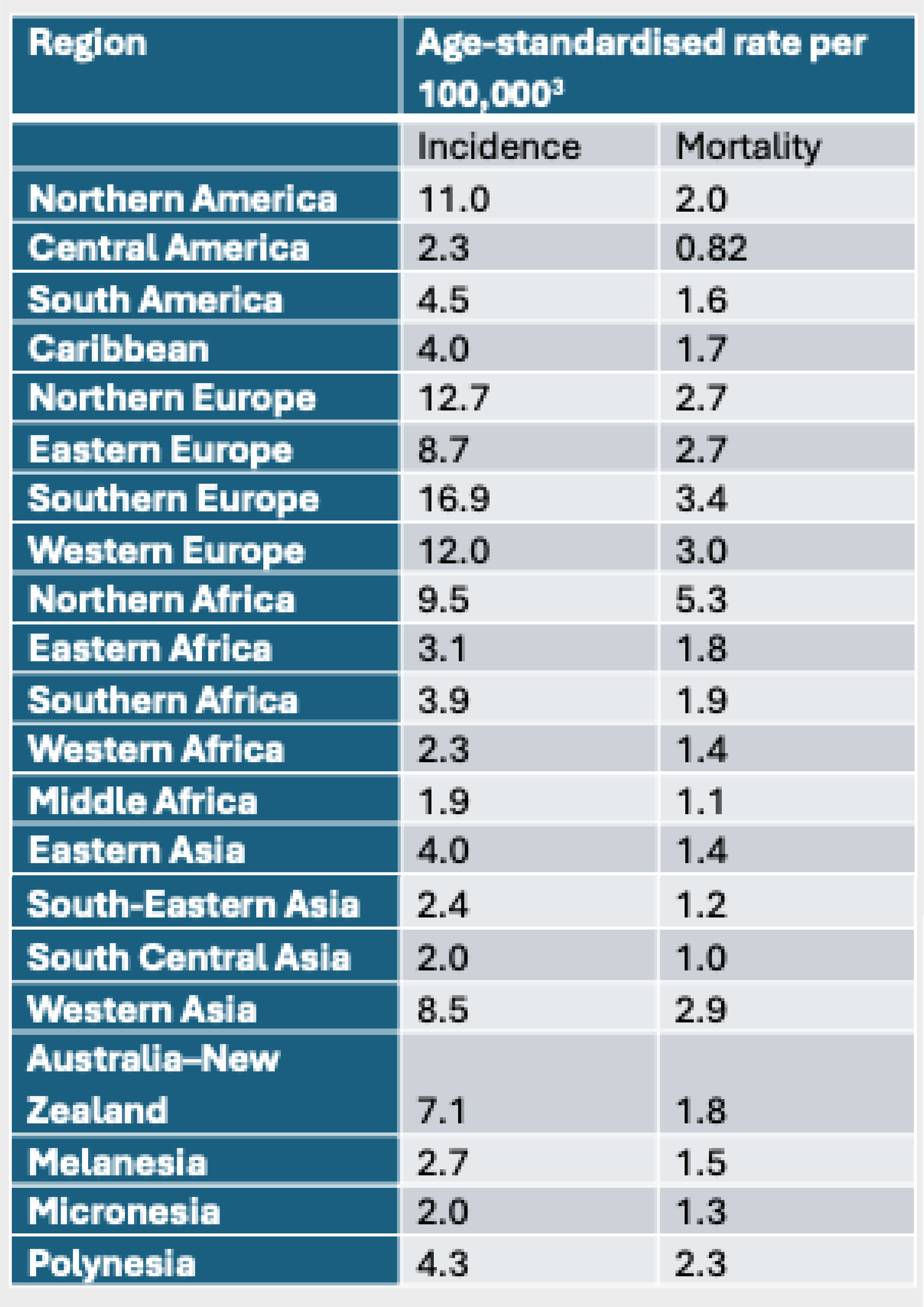 World map showing bladder cancer incidence rates in regions based on age-standardised rate per 100,0003