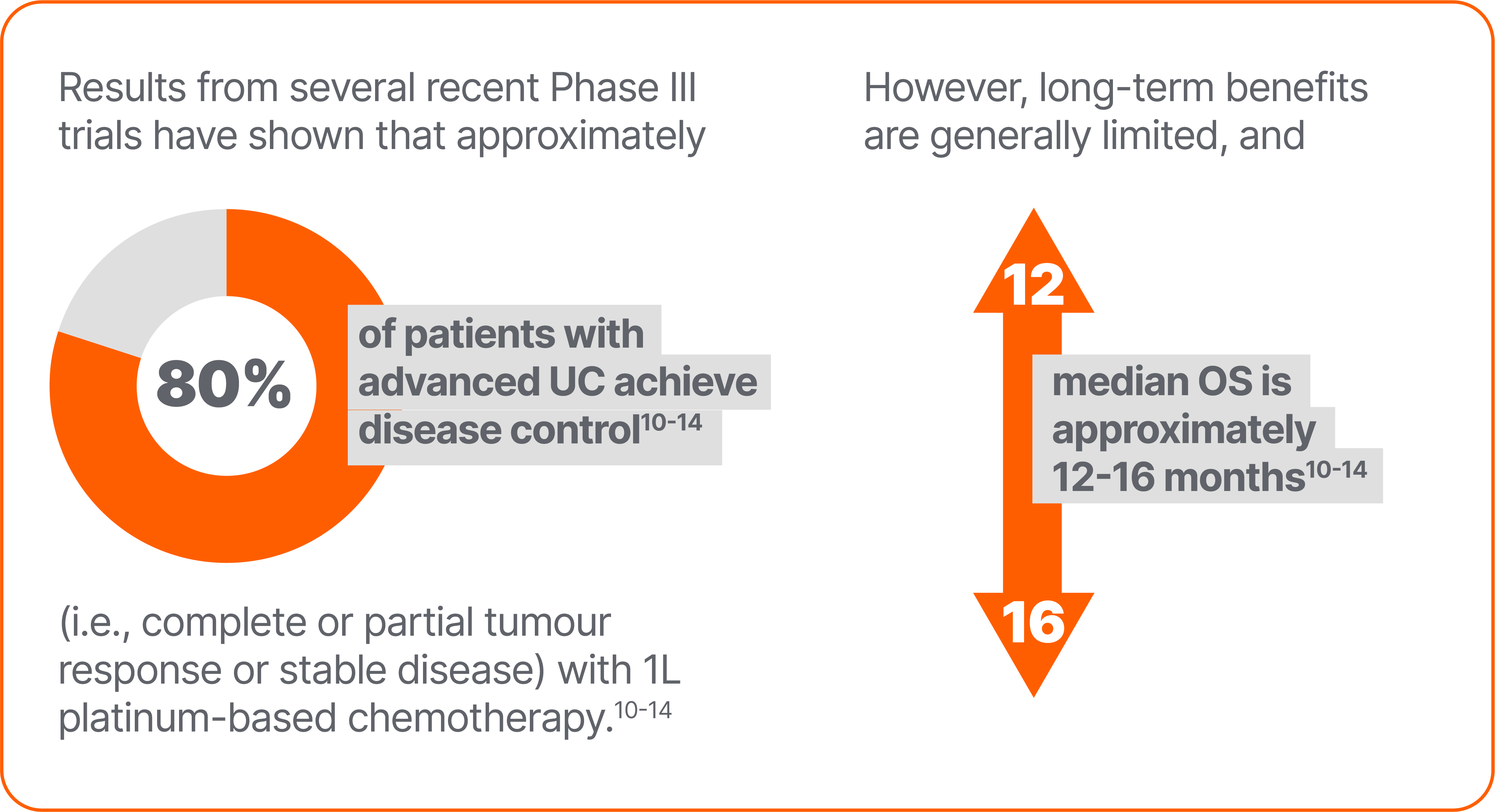 Platinum-based chemotherapy has been a mainstay first-line (1L) treatment for patients with advanced UC for >20 years.