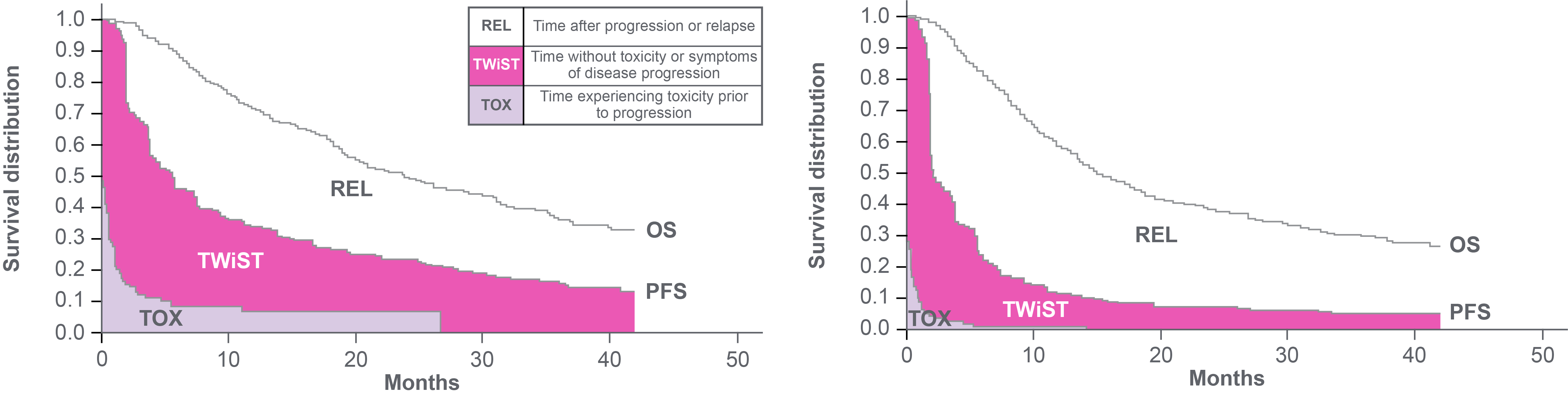 TWiST area in pink represents the improvement in quality-adjusted survival with avelumab + BSC versus BSC alone