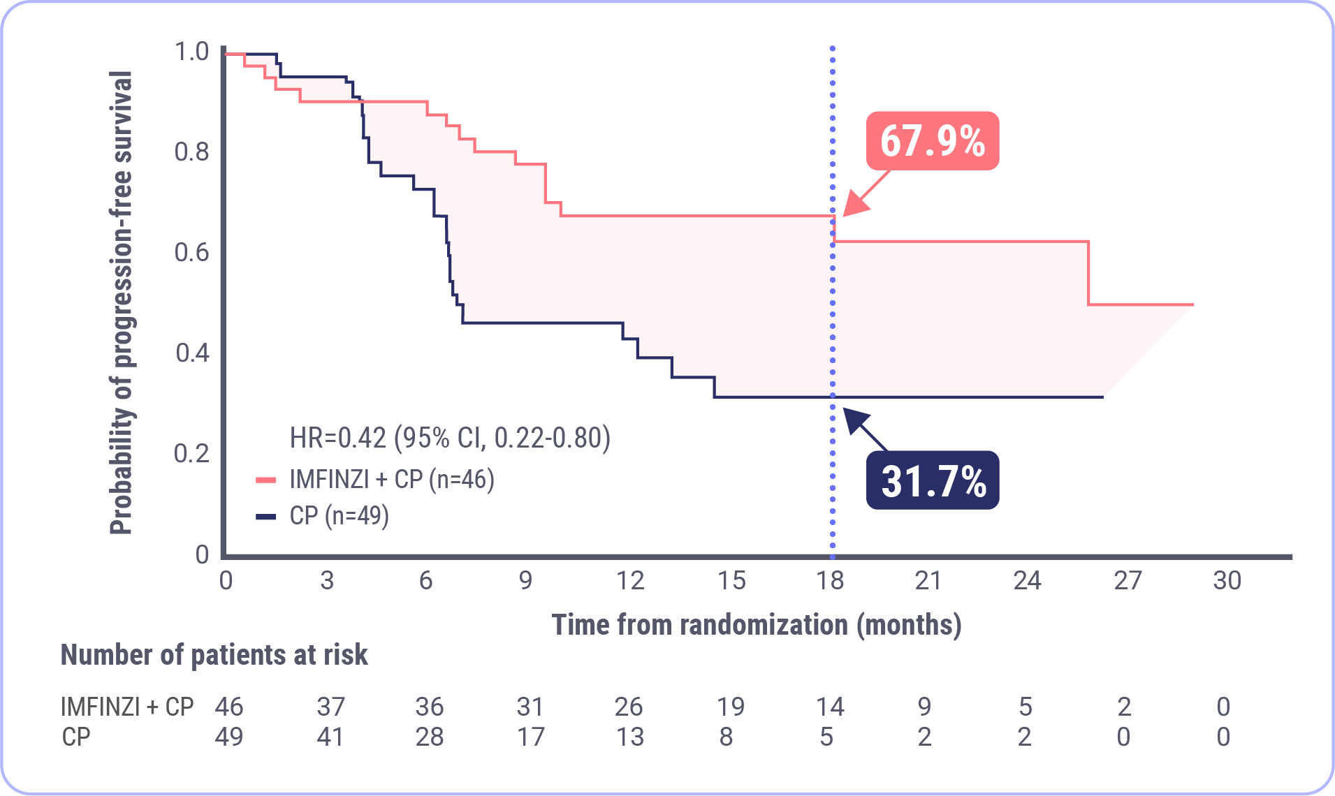 58% Reduction in the Risk of Progression or Deathwith IMFINZI + CP (HR=0.42 [95% CI, 0.22-0.80])