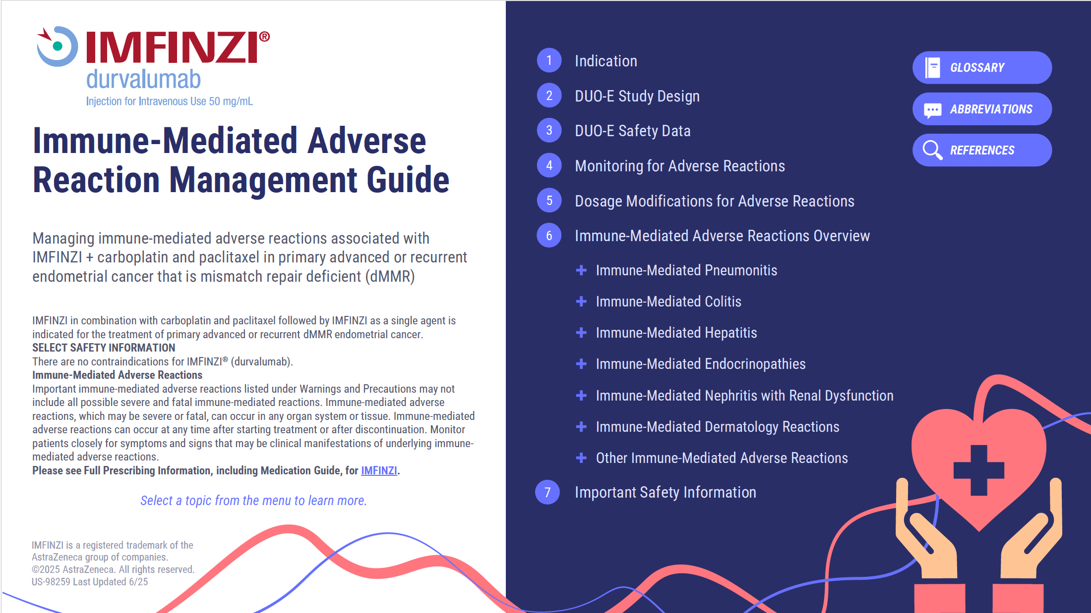 Managing immune-mediated adverse reactions associated with IMFINZI + carboplatin and paclitaxel in primary advanced or recurrent endometrial cancer that is mismatch repair deficient (dMMR)