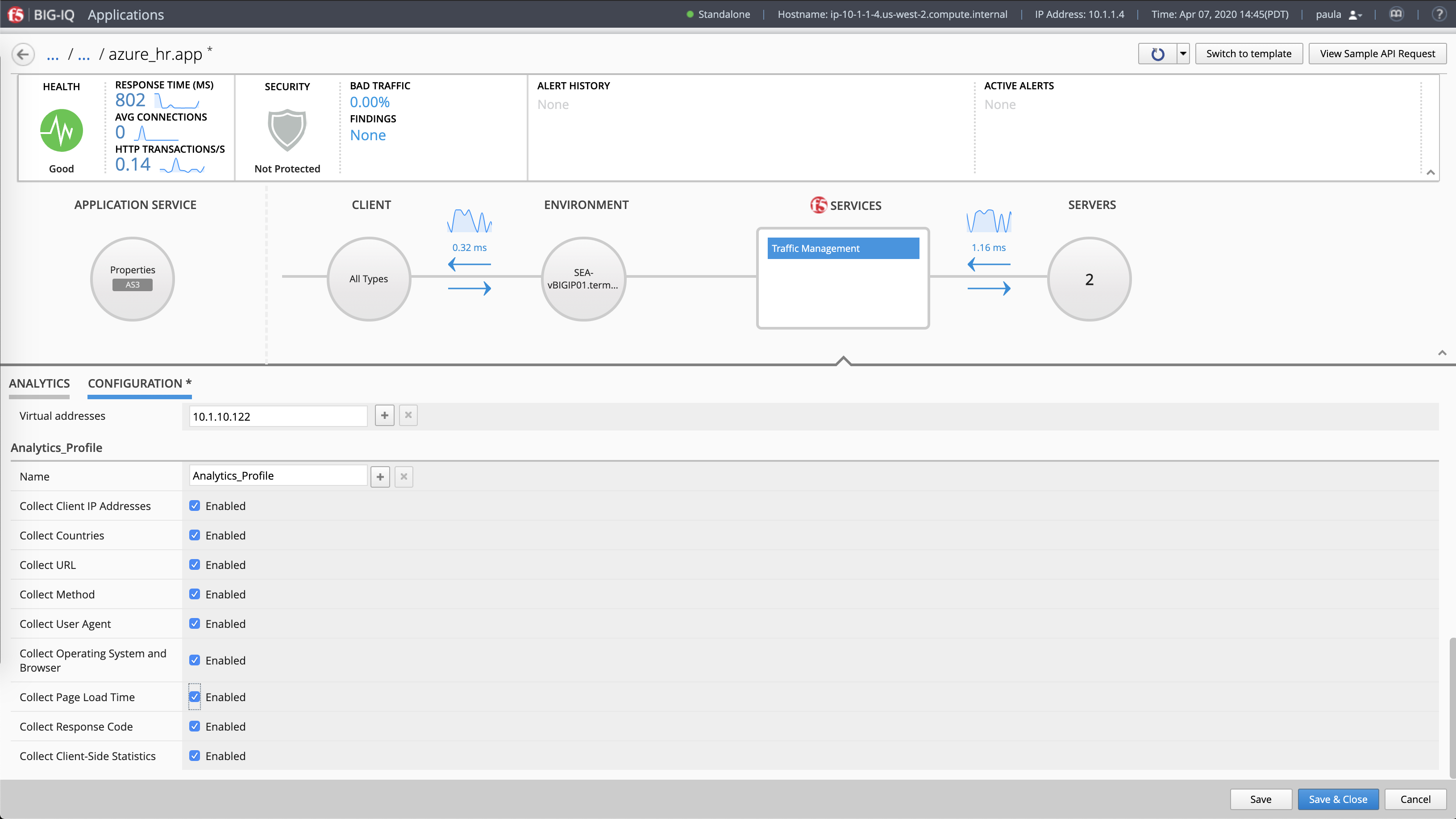 Here we see the app drilldown view for “hr.app.azure.” In this scenario, you, as the app