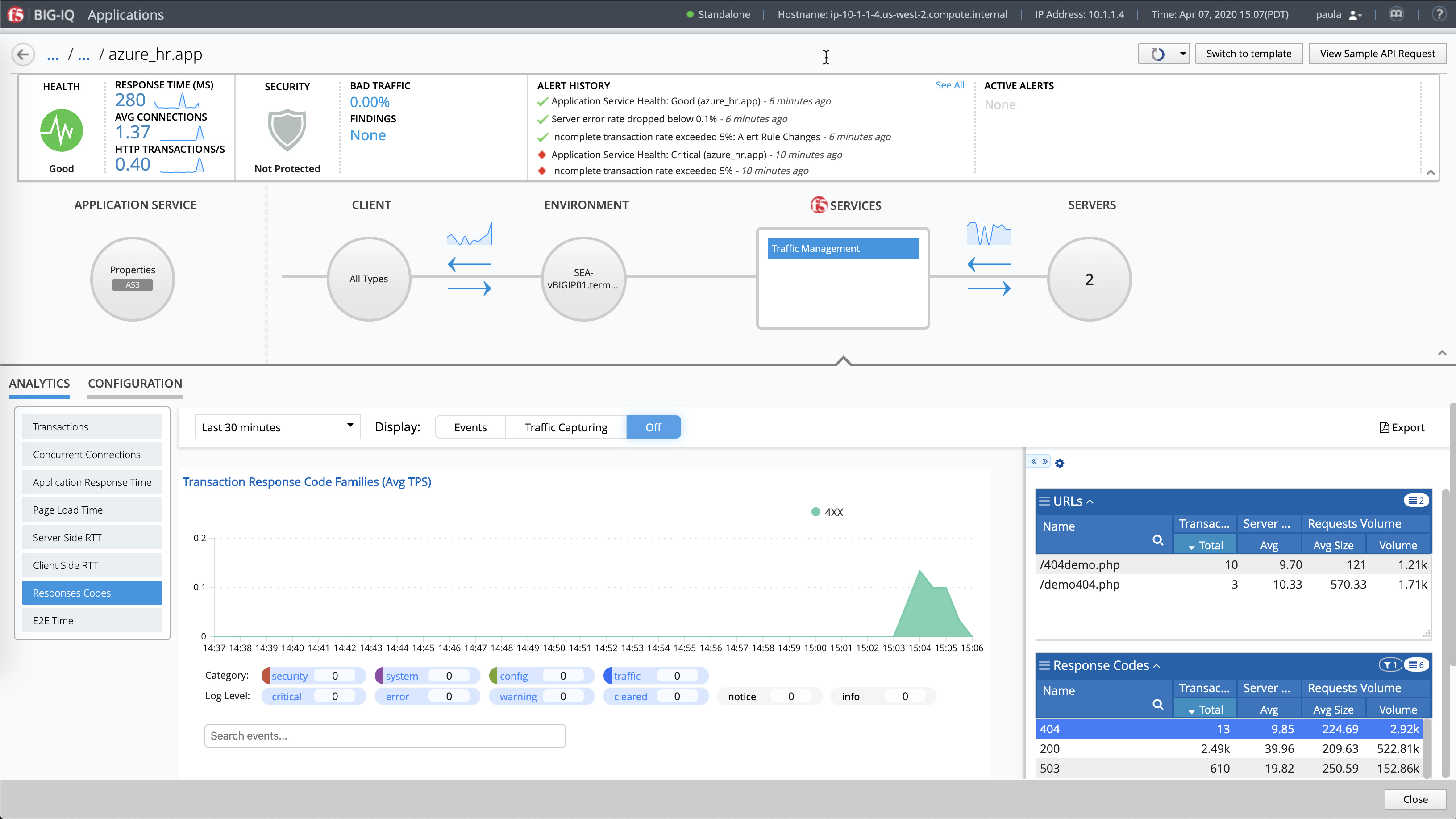 One of the major benefits of using BIG-IQ Centralized Management is that it enables you to quickly identify the root cause of application performance or security issues—for example, 404 errors, slow app response time, and single/massive attacks. And that means greatly reducing the mean-time-to-innocence and resolution for all