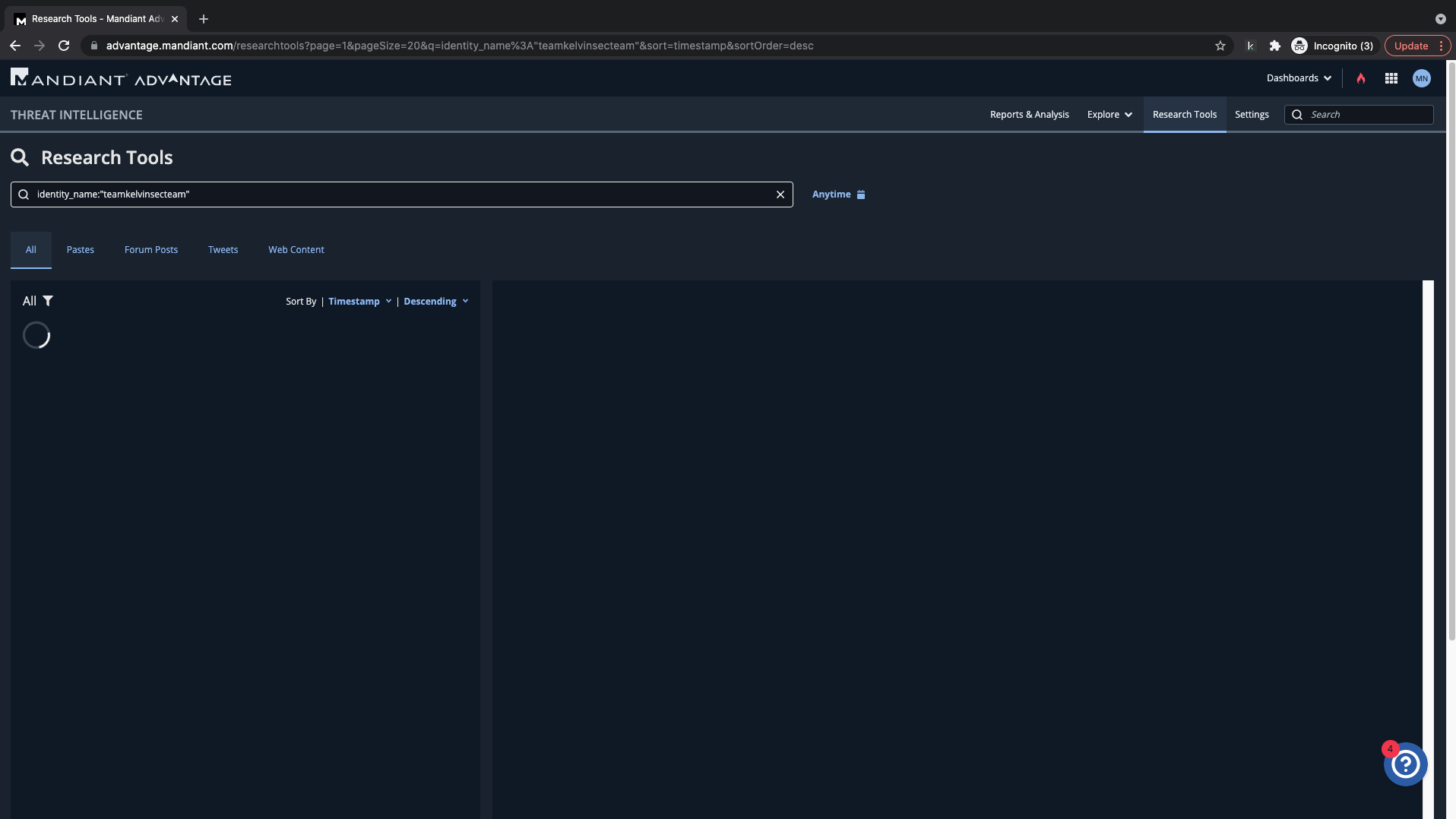 Access Research Tools next to the Mandiant Advantage search bar.