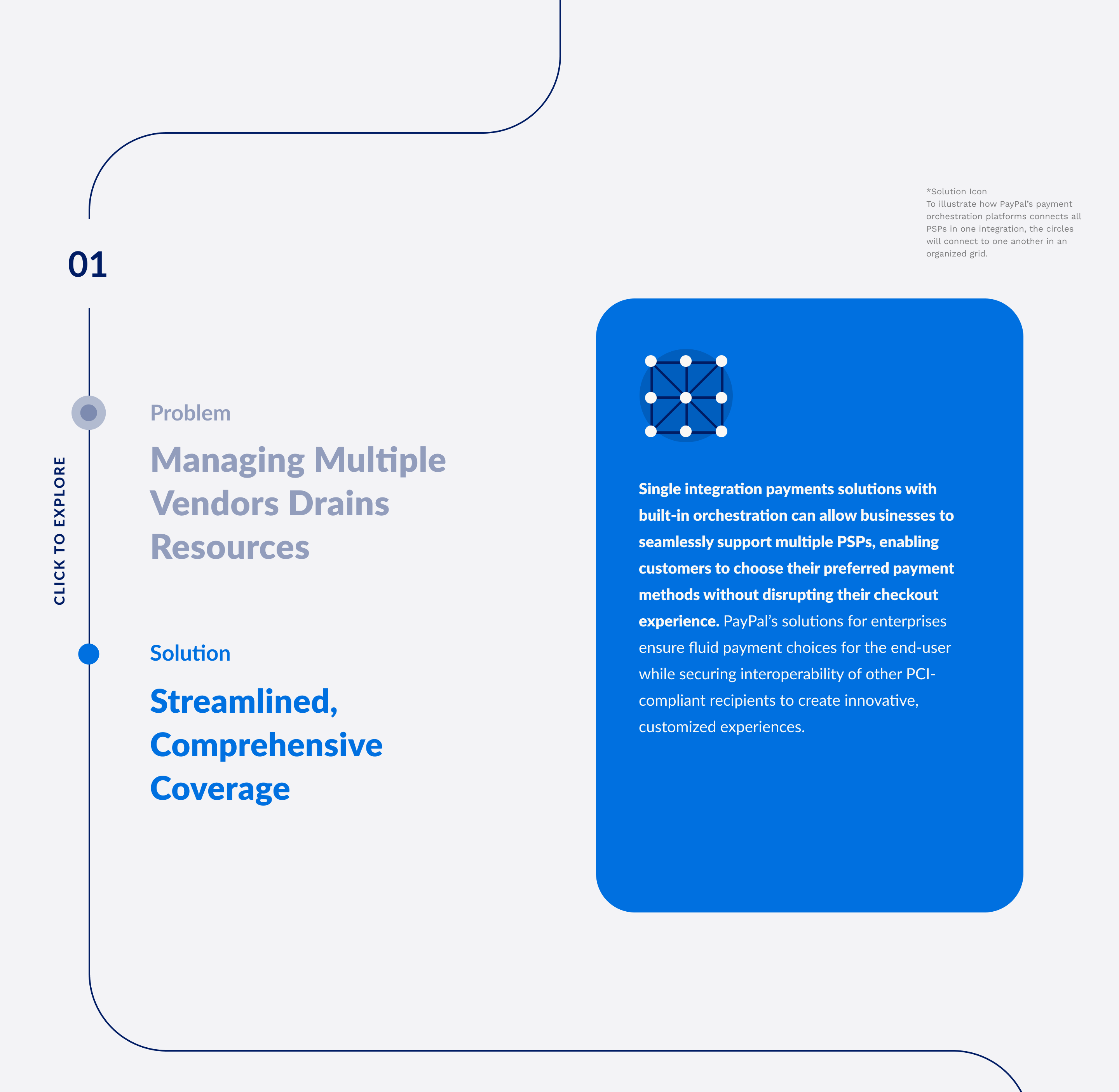 Single integration payments solutions with built-in orchestration can allow businesses to seamlessly support multiple PSPs, enabling customers to choose their preferred payment methods without disrupting their checkout experience. PayPal’s solutions for enterprises helps to ensure fluid payment choices for the end-user while helping to secure interoperability of other PCI-compliant recipients to create innovative, customized experiences.