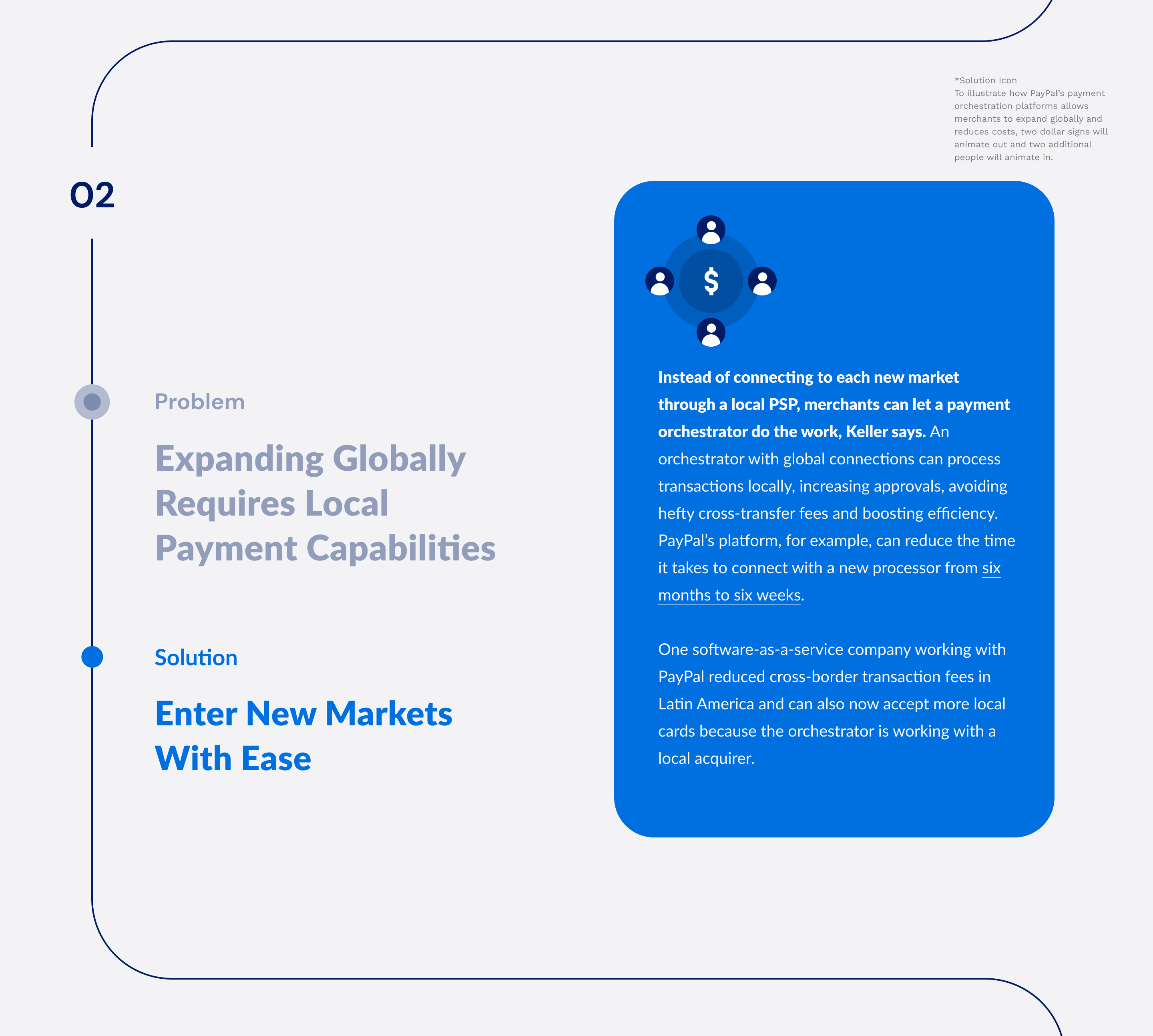 Imagine a software-as-a-service company that wants to expand in Latin America. By working with PayPal, they can reduce cross-border transaction fees and would be able to accept more local cards, allowing them to expand into a market that was previously out of reach due to the orchestrator working with a local acquirer.