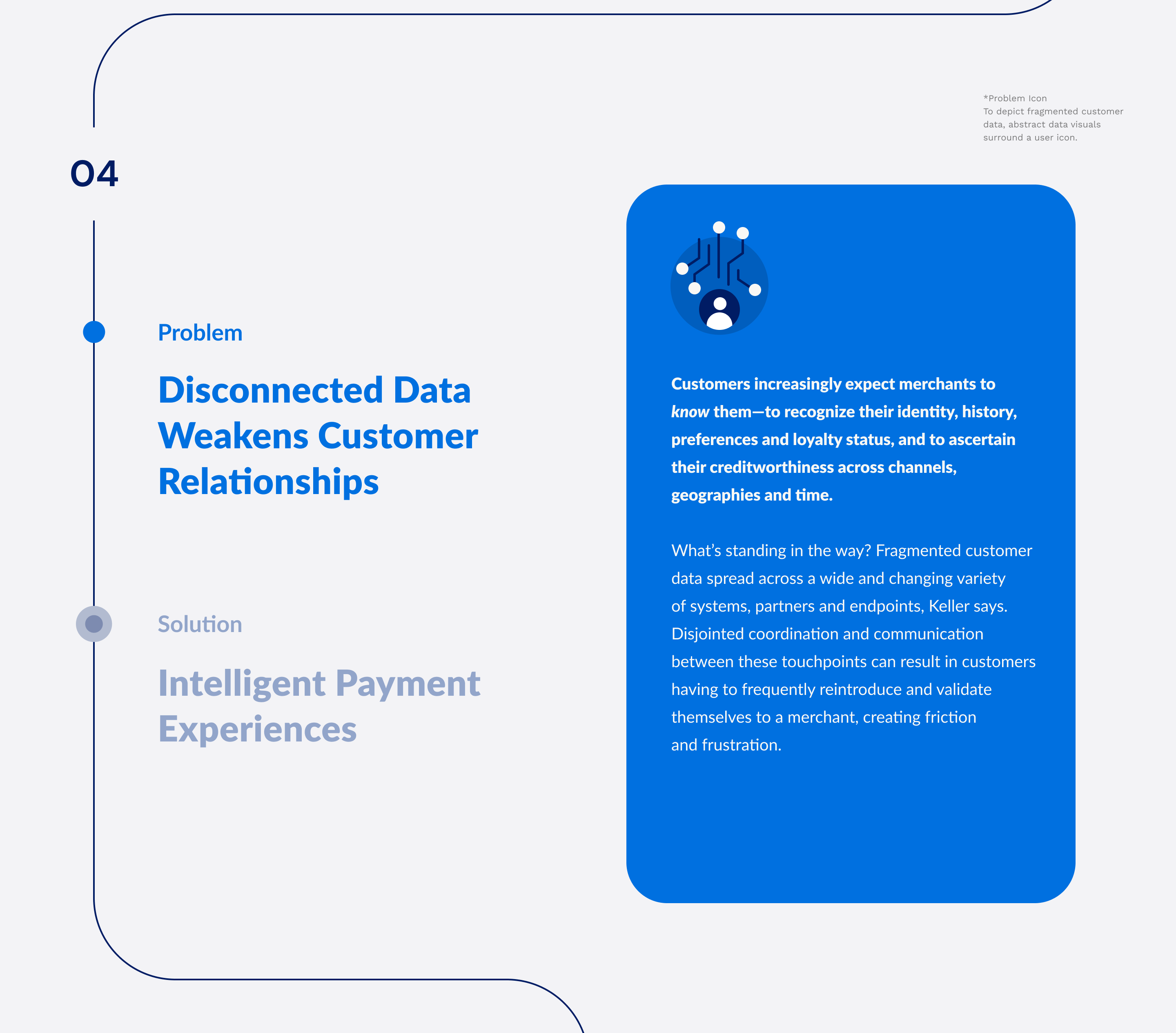 What’s standing in the way? Fragmented customer data spread across a wide and changing variety of systems, partners and endpoints, Pomeroy says. Disjointed coordination and communication between these touchpoints can result in customers having to frequently reintroduce and validate themselves to a merchant, creating friction and frustration.