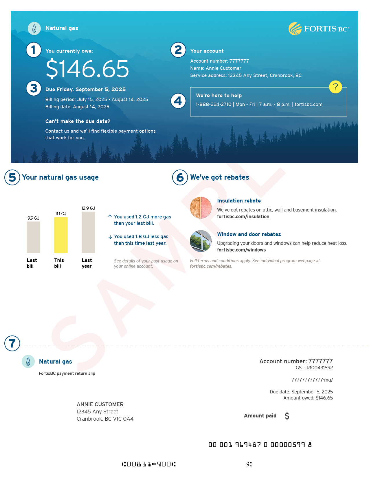 On every bill you’ll see an interesting gas fact that will help you understand what a GJ of natural gas is equivalent to and a corresponding tip to help you reduce your energy use.