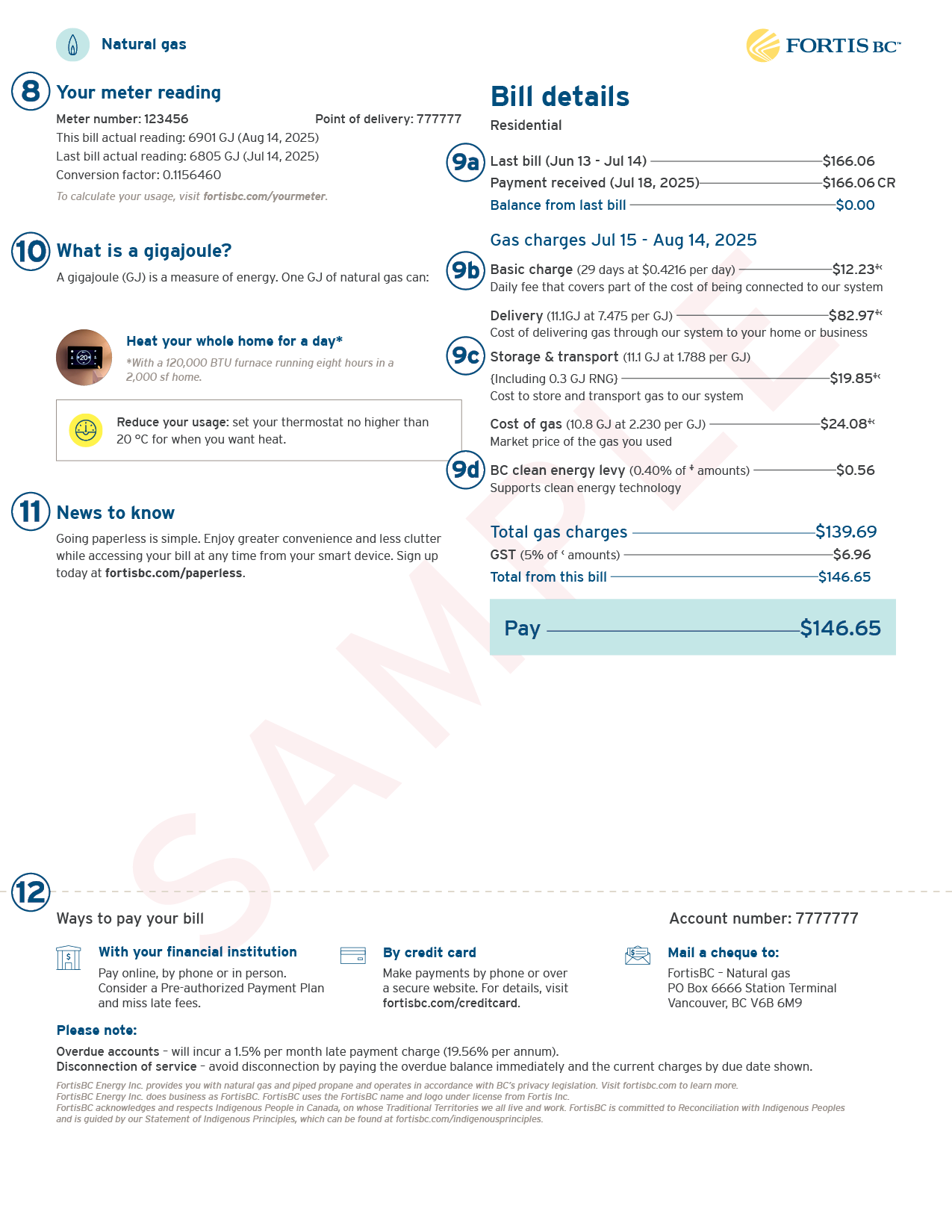 Every bill you’ll see an interesting gas fact that will help you understand what a GJ of natural gas is equivalent to and a corresponding tip to help you reduce your energy use.