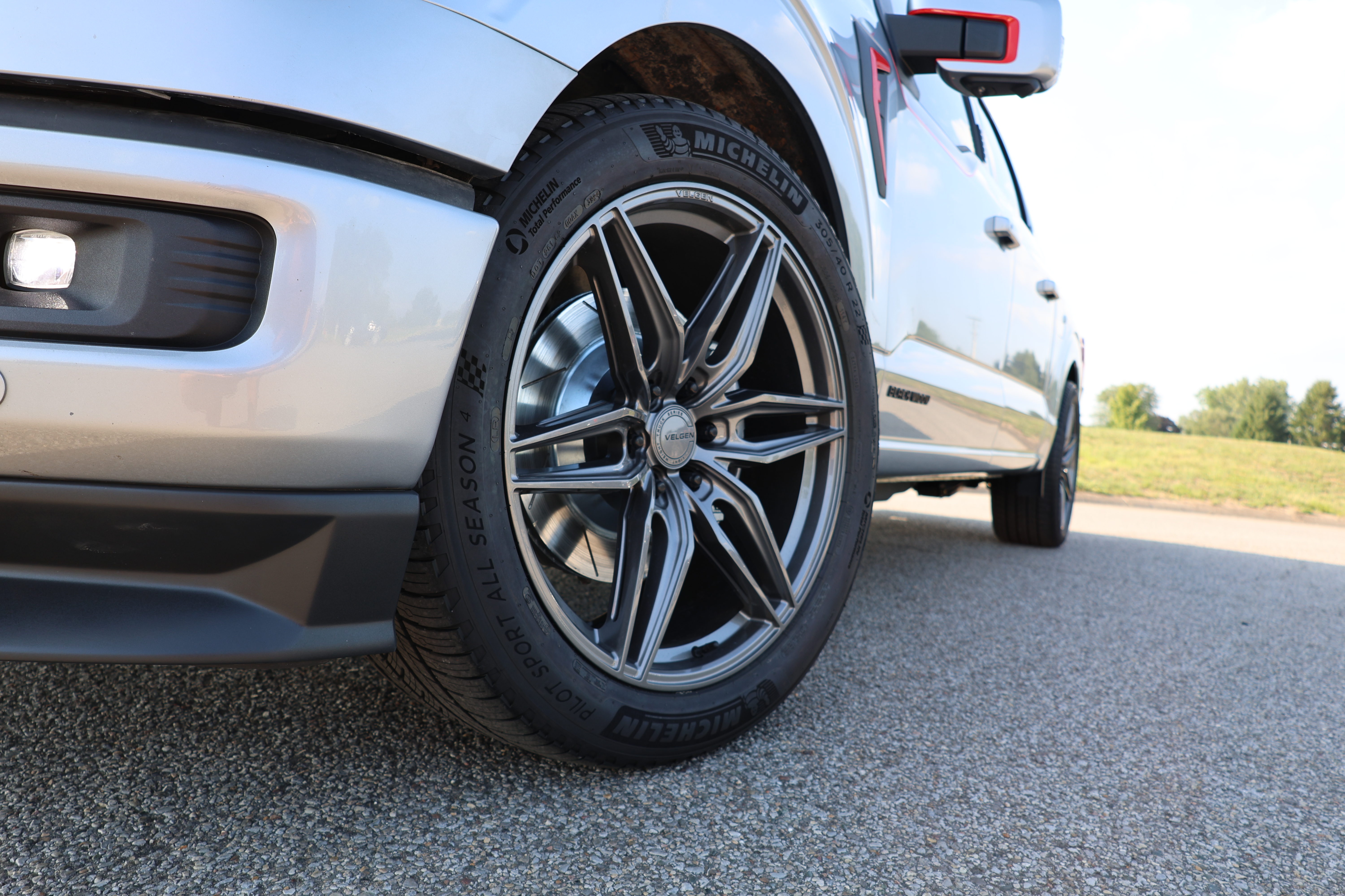 Massive 22-inch performance wheels pair with a big-brake kit for reliable stopping power and aggressive street handling.