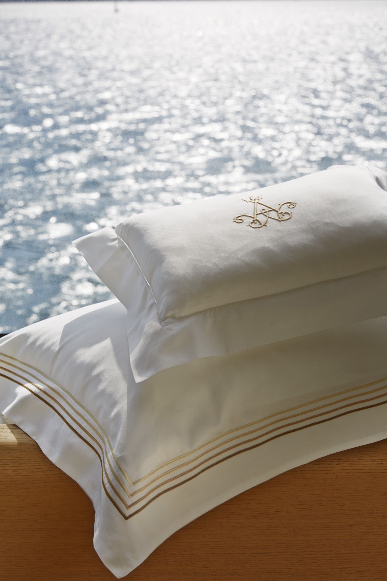 Add personal flair to a yacht or private jet with themed monograms and designs matched to any Frette linens.