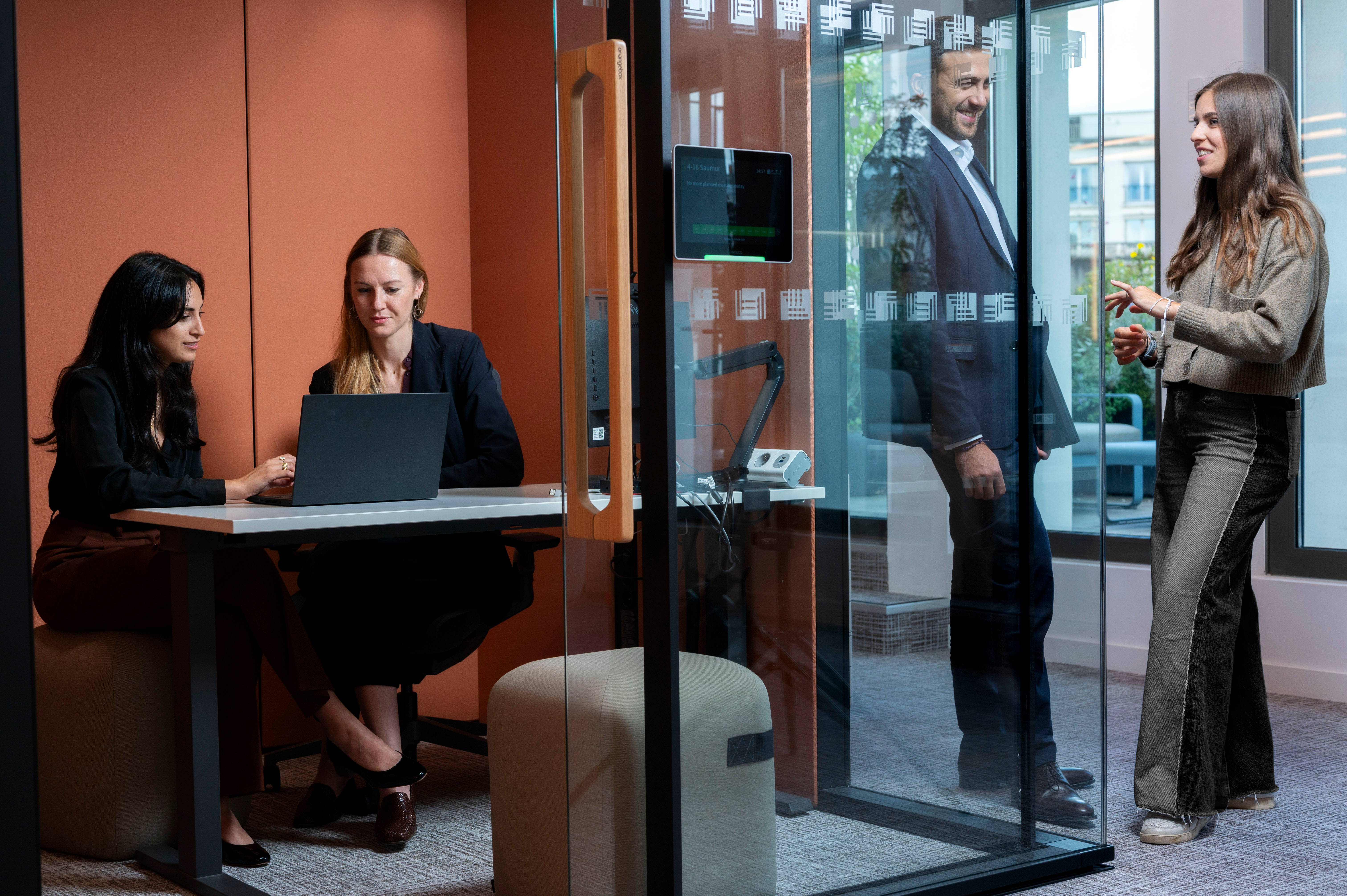 Our Paris office features open-planned pods made from sustainable materials and is equipped with LED lighting and recycling stations. There are also five terraces that grow biophilia and are maintained using recycled rainwater.