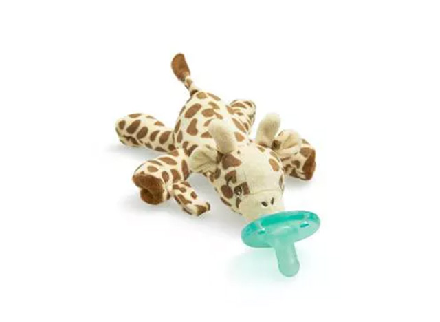 A favorite among parents and babies alike, this pacifier comes attached to an adorable plushie (choose from a giraffe, elephant, seal or monkey), making it easier for tiny hands to hold and for you to spot in the diaper bag than any other paci we tried. The stuffy is detachable for easy cleaning, the pacifier is BPA-free and the