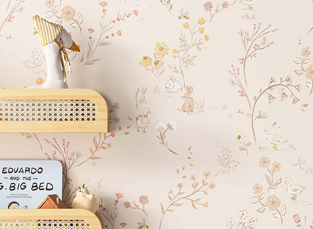 Perfect for nurseries and playrooms, Nestig’s wallpaper features hand-drawn designs that are equal parts whimsical and charming—think rolling meadows, bouncing bunnies and playful carnival scenes. Each batch is printed with Greenguard Gold certified ink on non-toxic paper, so it’s as safe as it is sweet for your baby’s space. (And technically, yes, you can install the paper yourself but the brand recommends getting a professional to help.)
