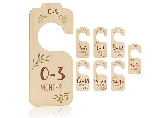 Whether they’re growing up or spitting up, babies go through clothes fast. These adorable wooden closet dividers make it easy to stay organized, so you’re not squinting at tags to find the right size. This set includes eight sturdy, gender-neutral dividers with sizes printed on both sides for easy visibility.