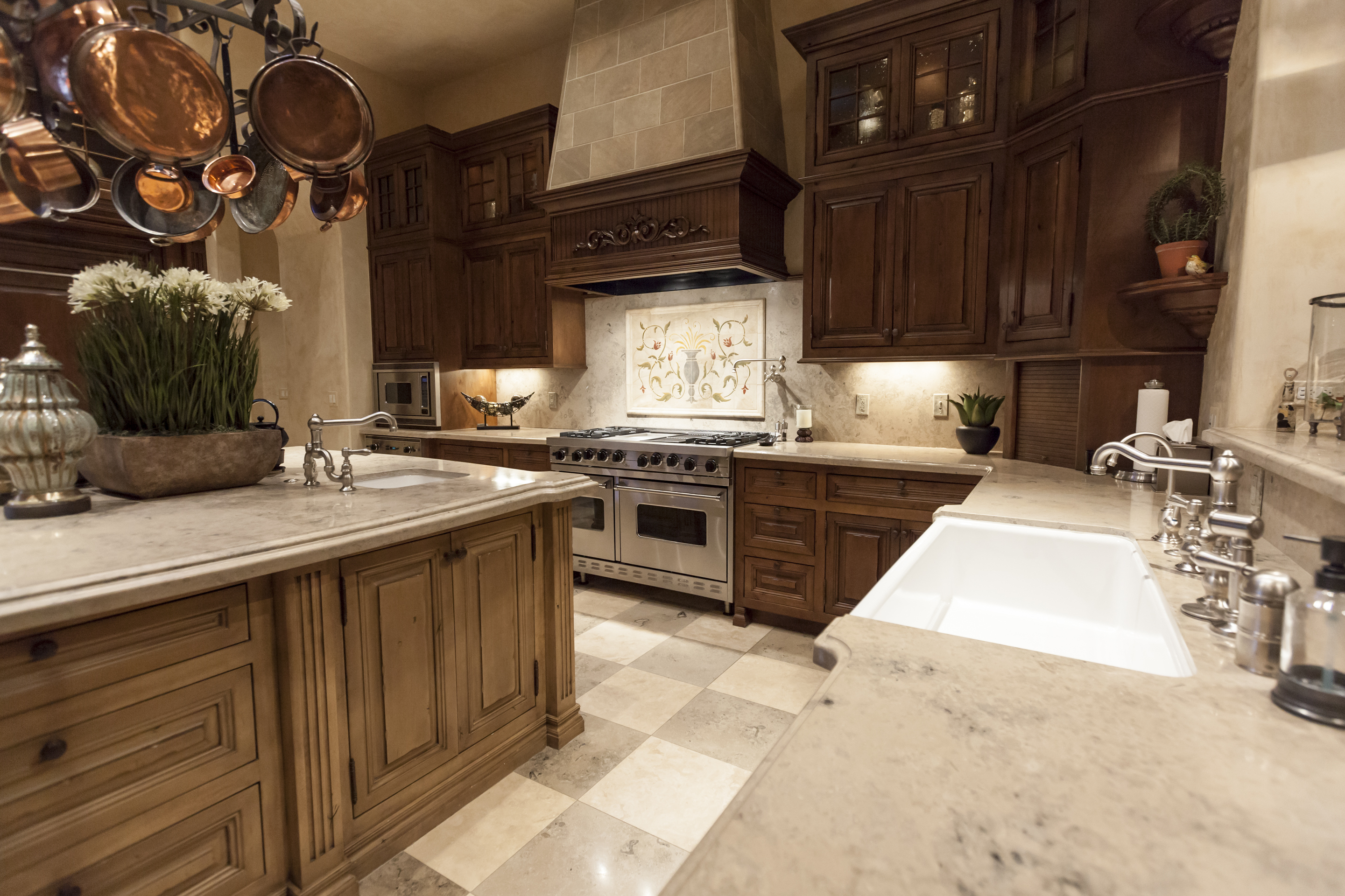 A classically Tuscan kitchen has three elements that bring the look together: 1) brick, 2) dark wood and 3) granite. The color palette involves lots of brown and terracotta tones with honeyed/copper accents—mostly to replicate the sunshine and soil in Tuscan wineries. So now, we’re seeing a coastal version of Tuscan with an emphasis on the lighter, more airy Mediterranean Sea (as opposed to the deep and vibrant colors of the rolling hills). Instead of brick backsplashes and granite countertops, modern Med uses limestone on the walls and classic Calcutta marble or travertine on the surfaces. This makes it feel current without sacrificing rustic charm, perfectly in line with the updated farmhouse theme we’re seeing in interiors right now.