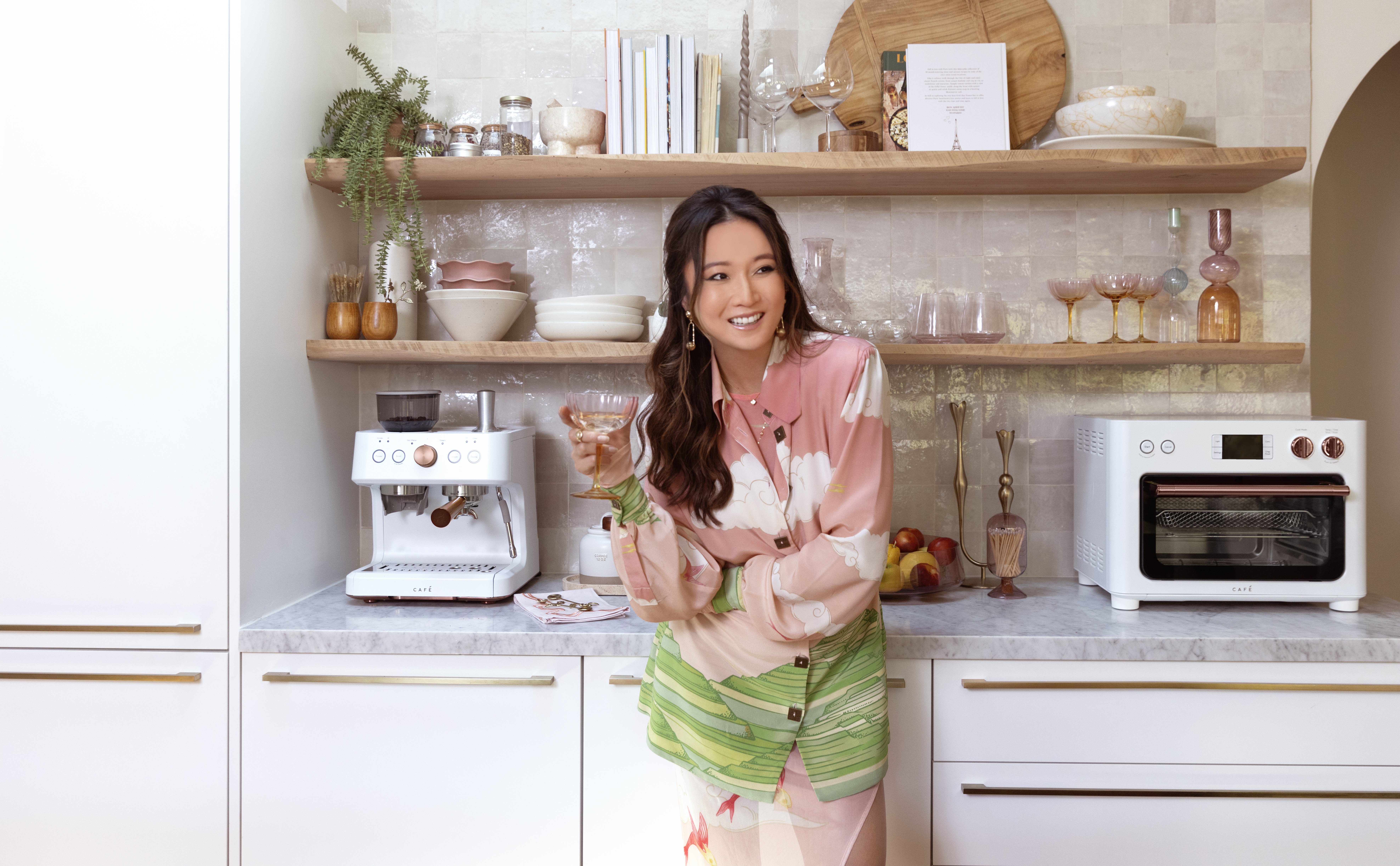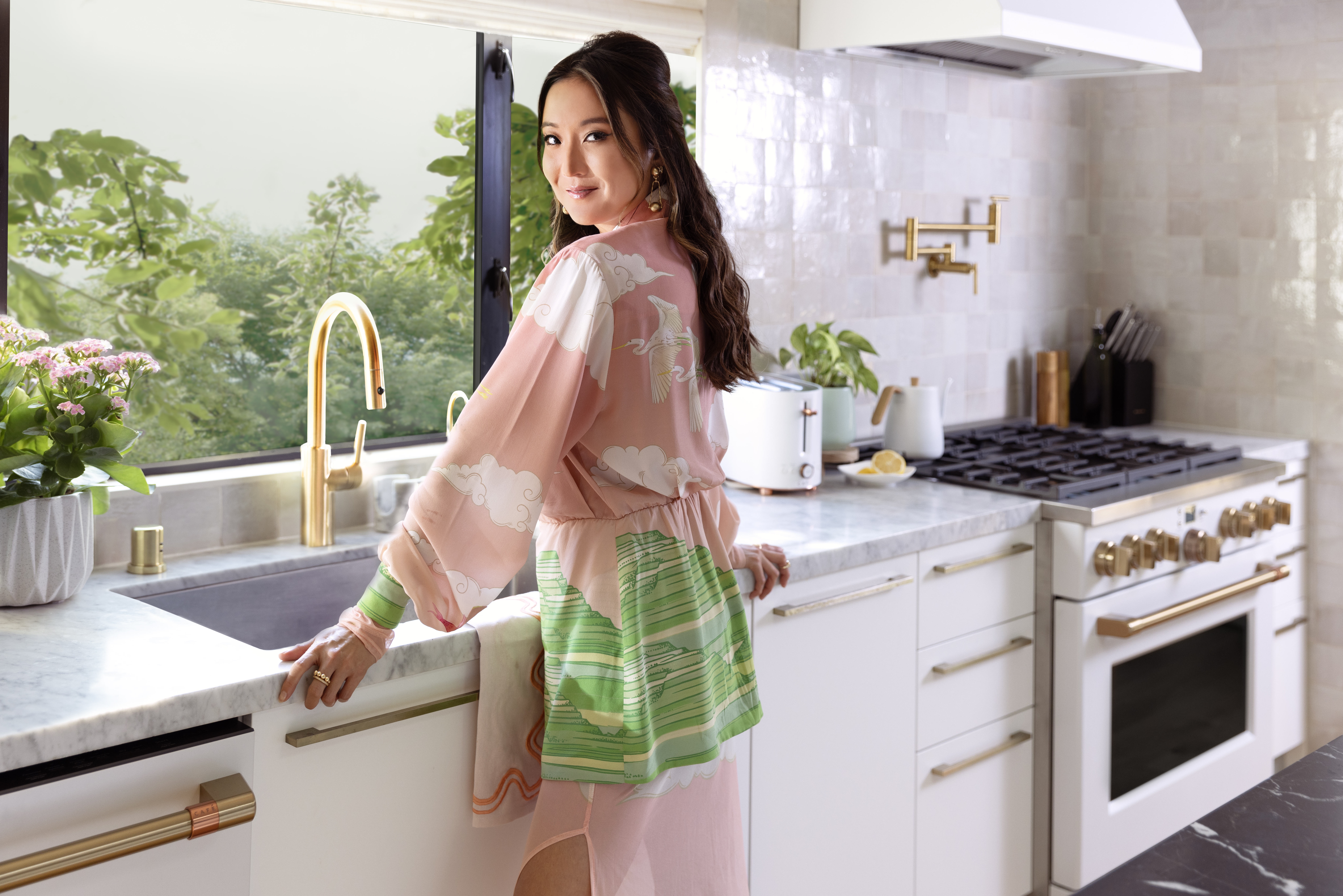 A tour of actress Ashley Park’s Los Angeles kitchen reveals that style is something she lives and breathes, no surprises there. “If I had to give a theme to my kitchen, it would probably be ‘stylish serenity,’” muses Park as we chat about some of her favorite bells and whistles in her newly updated kitchen—artfully outfitted with a suite of customized CAFÉ appliances. Beloved for her portrayal of Mindy Chen on Netflix’s Emily in Paris, Park makes her character’s wit, tenacity, friendship and aspirational clothing come alive. Her fans gush over everything from her accolades to her relationship. She’s loveable. And she loves her people back. Hence the importance of having a welcoming space in her home that feels right. “For me, the kitchen is emblematic of the social space in the house. I’m excited to invite people into this aesthetic and this feel, because I designed it and I got to express myself through it. I feel like I have real ownership over this space that feels very special in this house.”