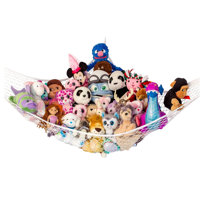 The solution to your stuffed animal avalanche? This corner hammock that keeps the plush pile off the floor (but still accessible).