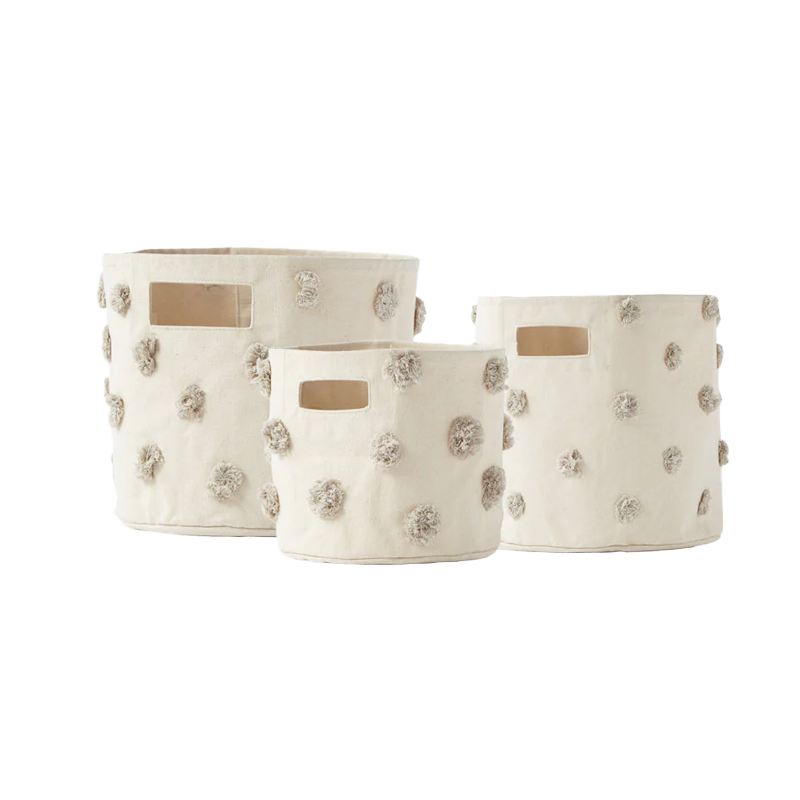Three adorable storage bins perfect for toys, laundry, hide-and-seek and more.