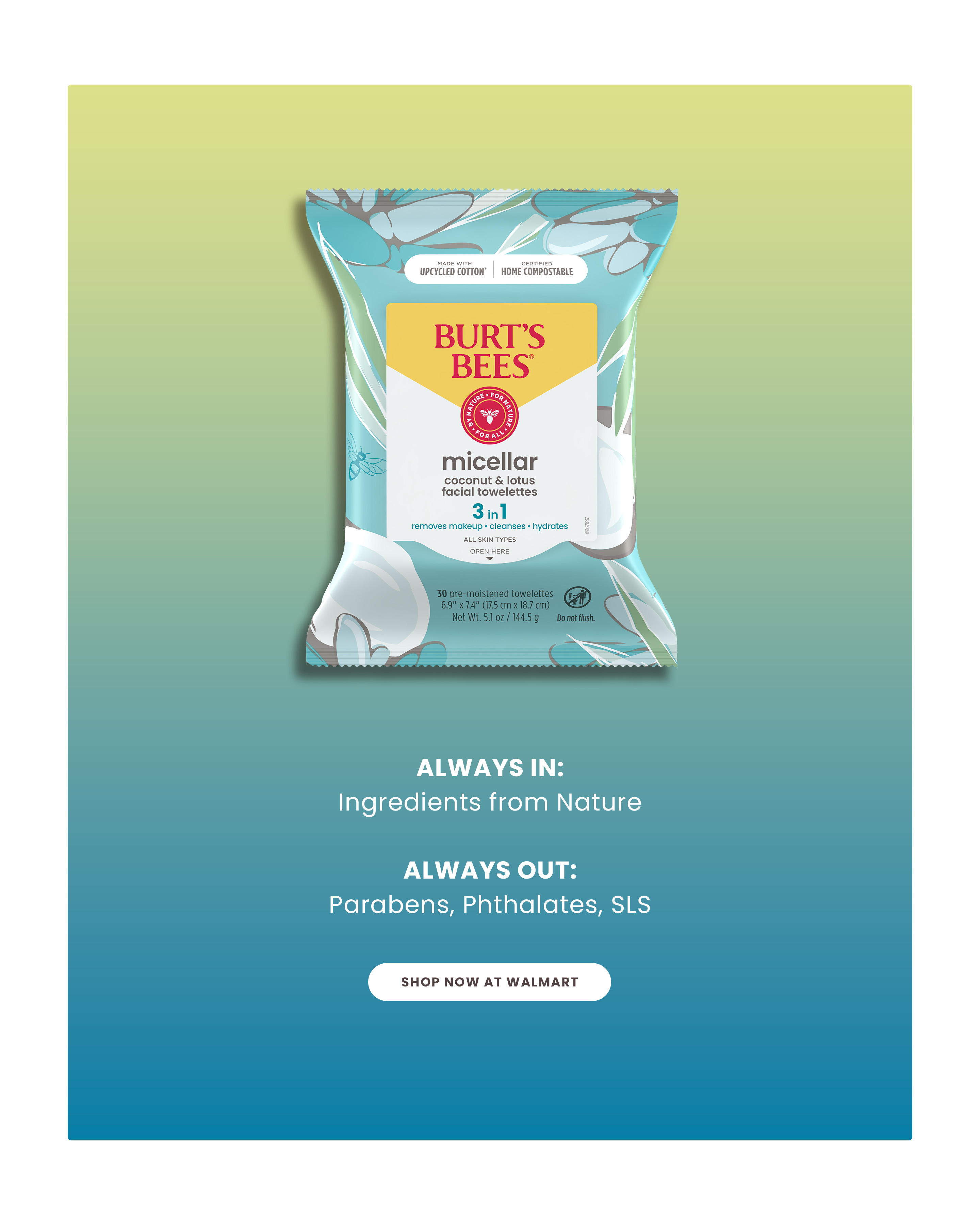 “We could all be better at practicing sustainability in our own daily life by making smarter choices about what we consume, including purchasing products that exhibit sustainability—like Burt's Bees Micellar Towelettes made from 70 percent upcycled cotton from T-shirt manufacturing scraps. They’re certified home compostable by TUV Austria* to help close the loop on waste.”