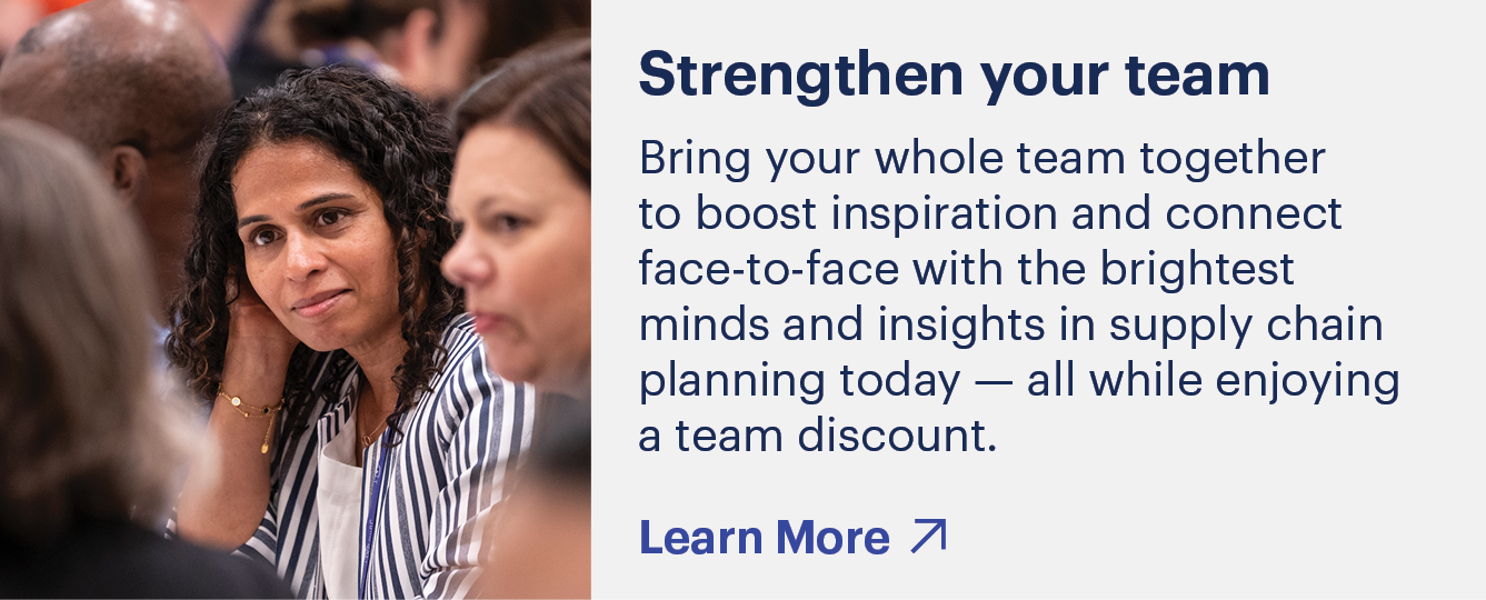 Build new relationships, broaden your perspectives and uncover ways to solve problems alongside other supply chain planning leaders.