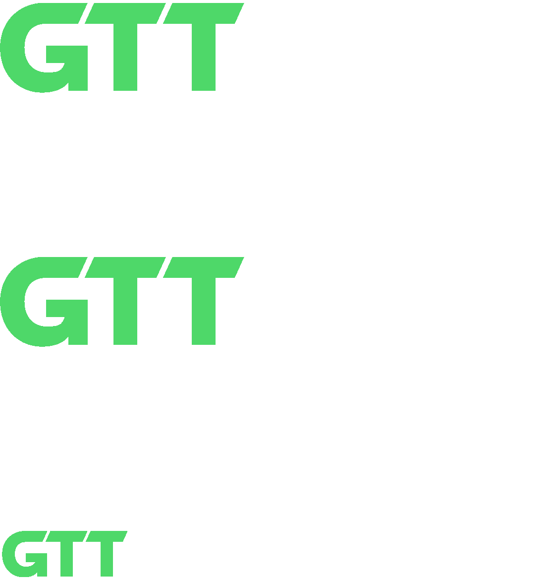 There are three versions of our logo but most of the time we will use the GTT Green version. It will mainly appear on black but can be used on white as long as visibility is ensured.