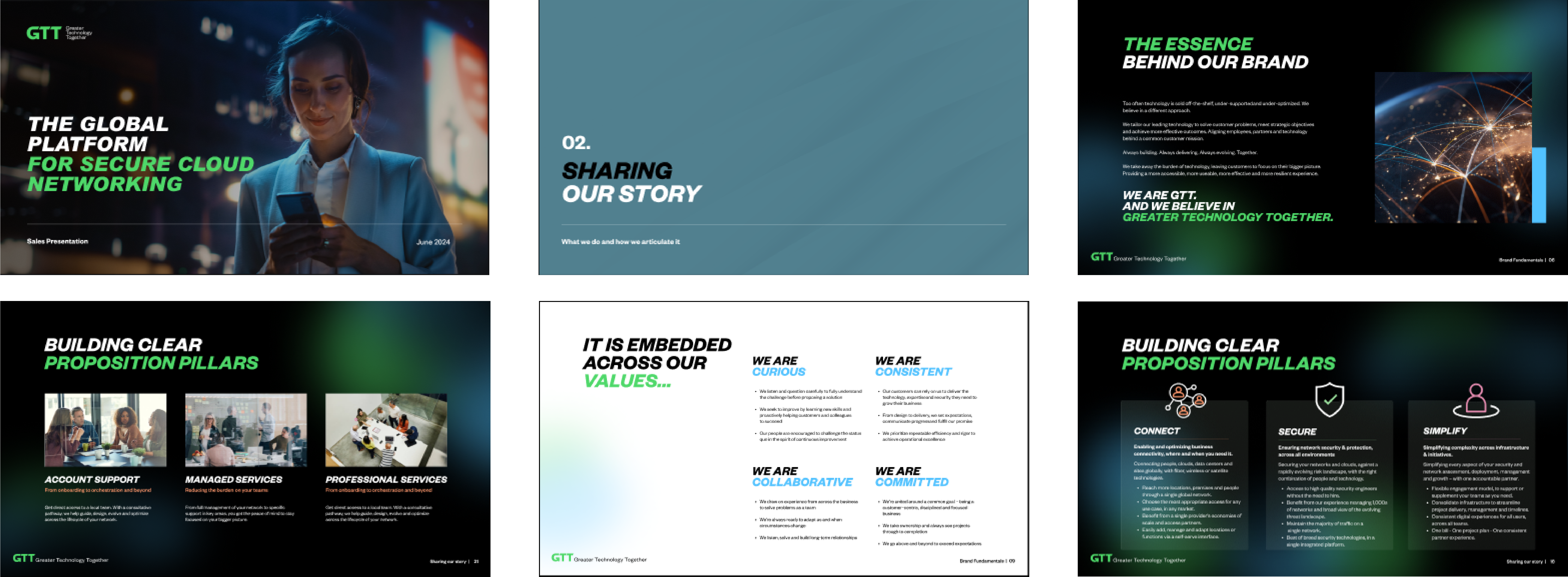 We operate in a highly competitive sector characterized by daily change and disruption. To increase our brand awareness and demand for our services both online and offline, we must stand out. Evolving our brand identity helps us design for maximum impact to cut through, extend our reach and better serve our customers in today’s always-on world. This document is a reference to be used internally and with external partners who represent or support GTT in going to market. It aims to align all GTT colleagues to understand who we are and what we stand for, in addition to consistency in brand application across all marketing, sales and communications materials. By following this guide, our brand can stay true to the creative principles that make us unique and support our mission for driving Greater Technology Together.