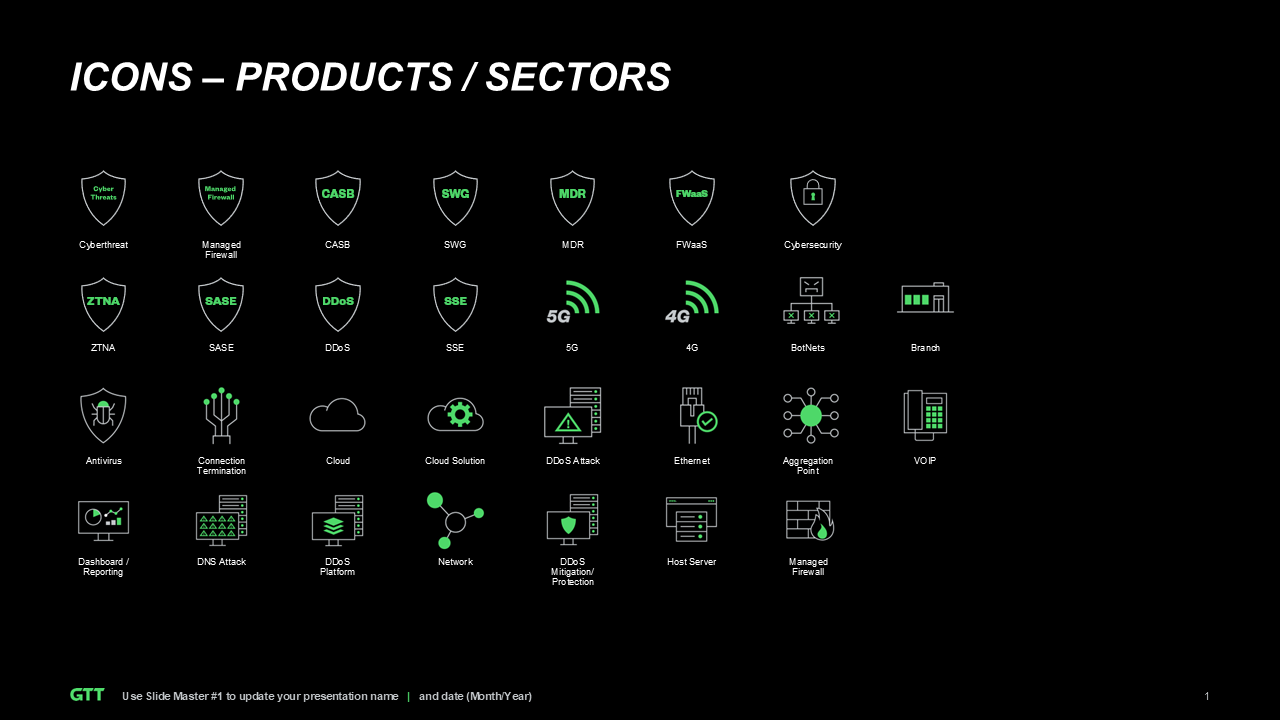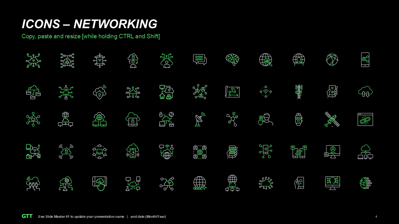 Sentence opening, suitable for describing GTT as part of a sentence, e.g. when beginning a press release. GTT, a leading networking and security as a service provider for multinational organizations, has announced.... One line (max. 160 characters incl. spaces, suitable for when only one sentence is needed e.g. flyers or X). GTT is a leading networking and security as a service provider for multinational organizations, connecting people and machines to data, and applications – anywhere in the world. Short form (max. 250 characters, suitable for limited space descriptions, such as brochures, Facebook, etc.) GTT is a leading networking and security as a service provider for multinational organizations, connecting people and machines to data, and applications – anywhere in the world. We connect. We secure. We simplify.