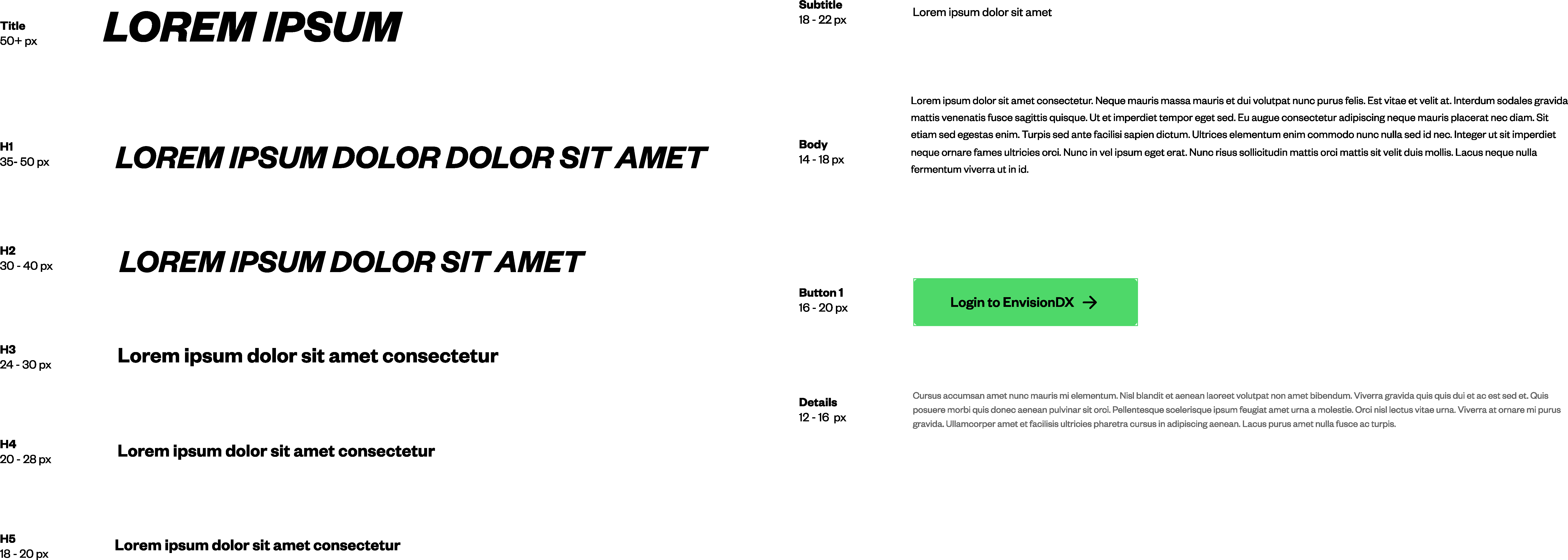 Founders Grotesk Bold Italic is used for headings, sub-headings and feature copy in all UPPERCASE.Founders Grotesk is used in three weights, Regular, Medium and Semibold. Italic versions of these weights are available if needed. These two fonts are used for all body text and captions.