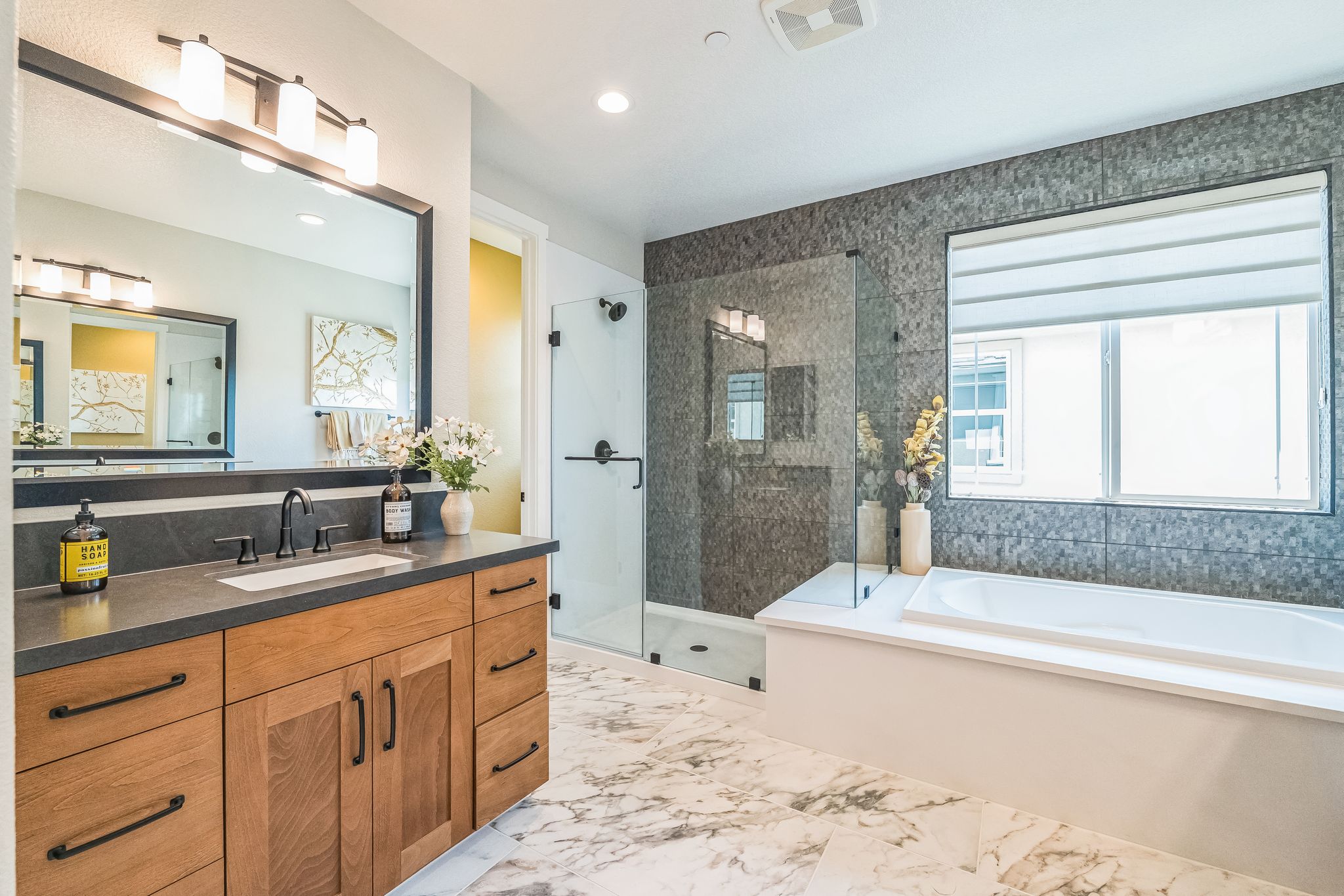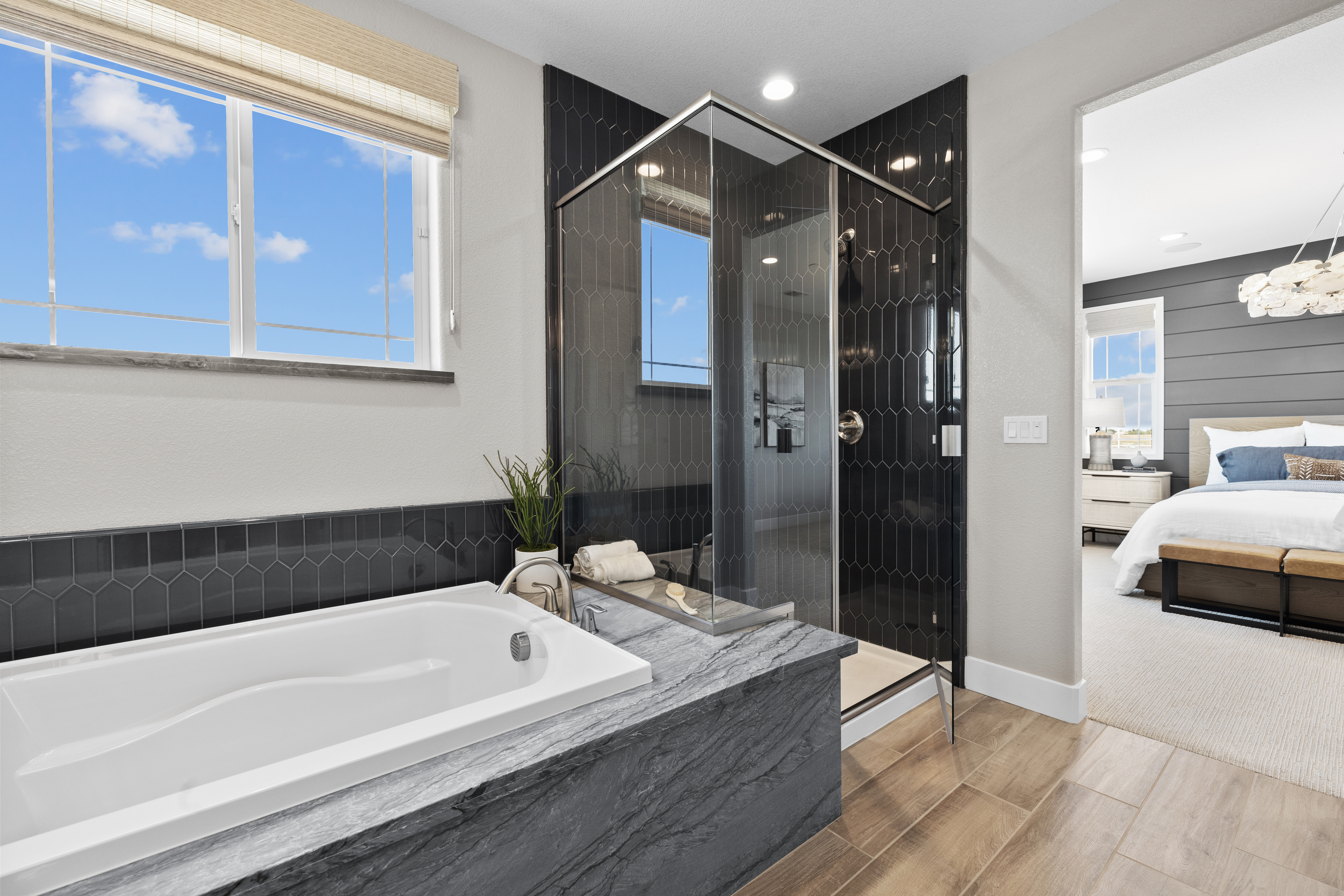Experience spa-inspired luxury in the owner’s bathroom at Rancher’s Gate in Summer Lake North.