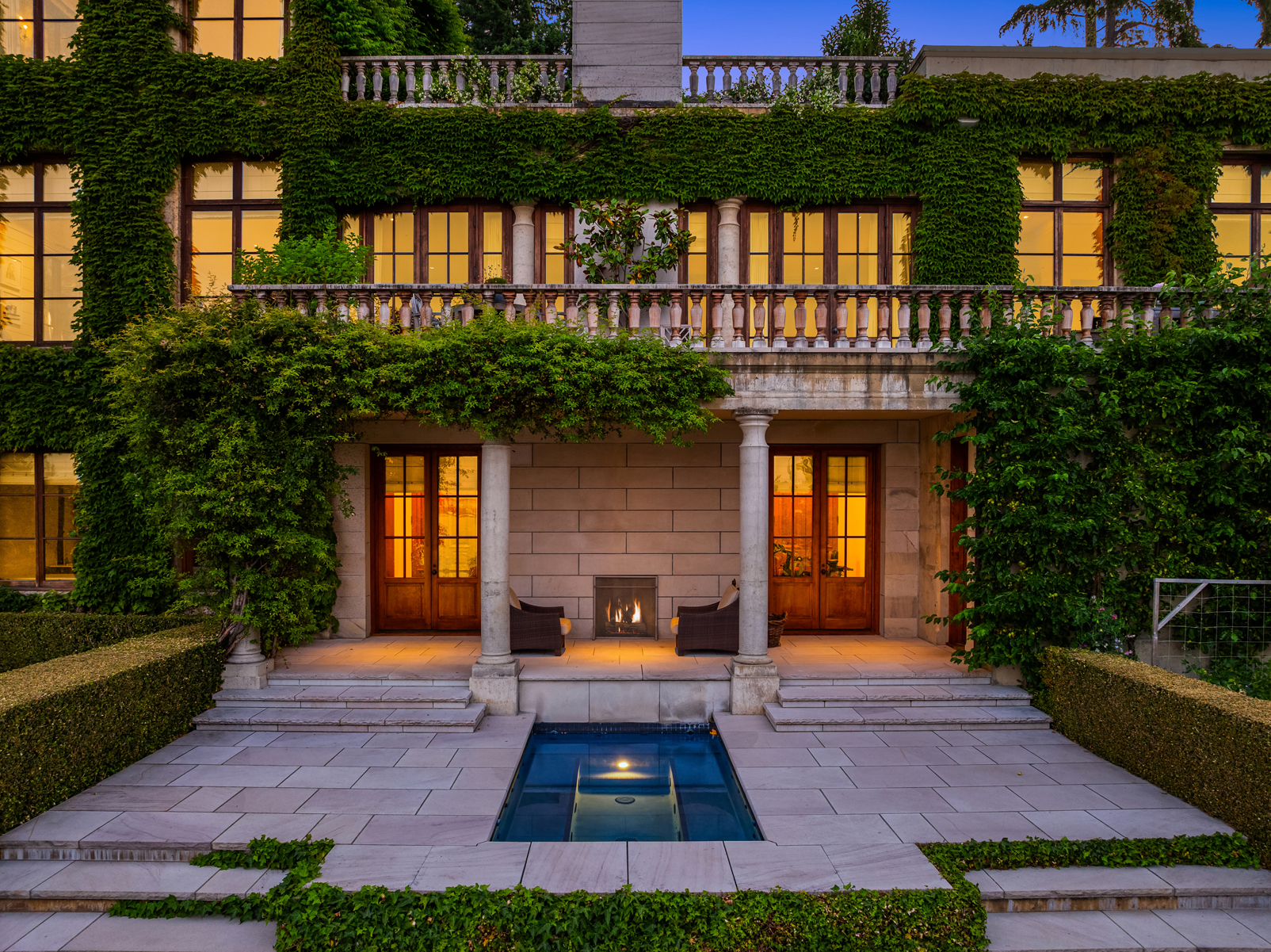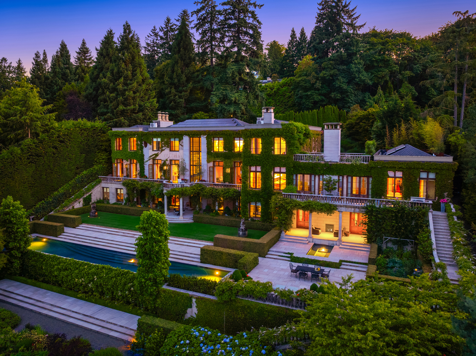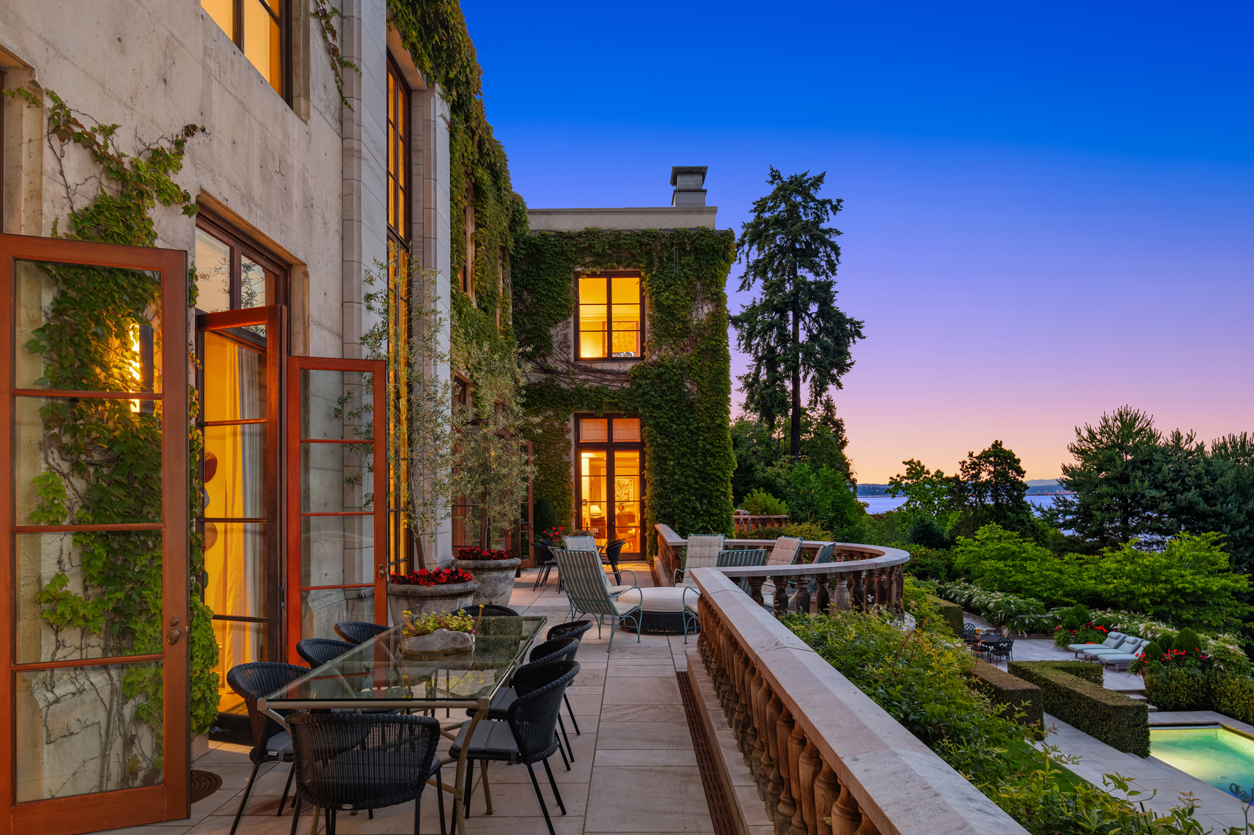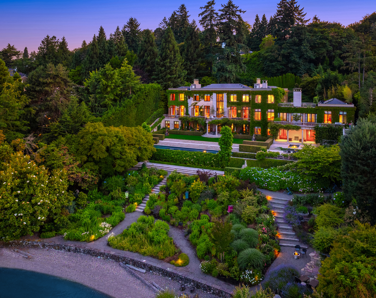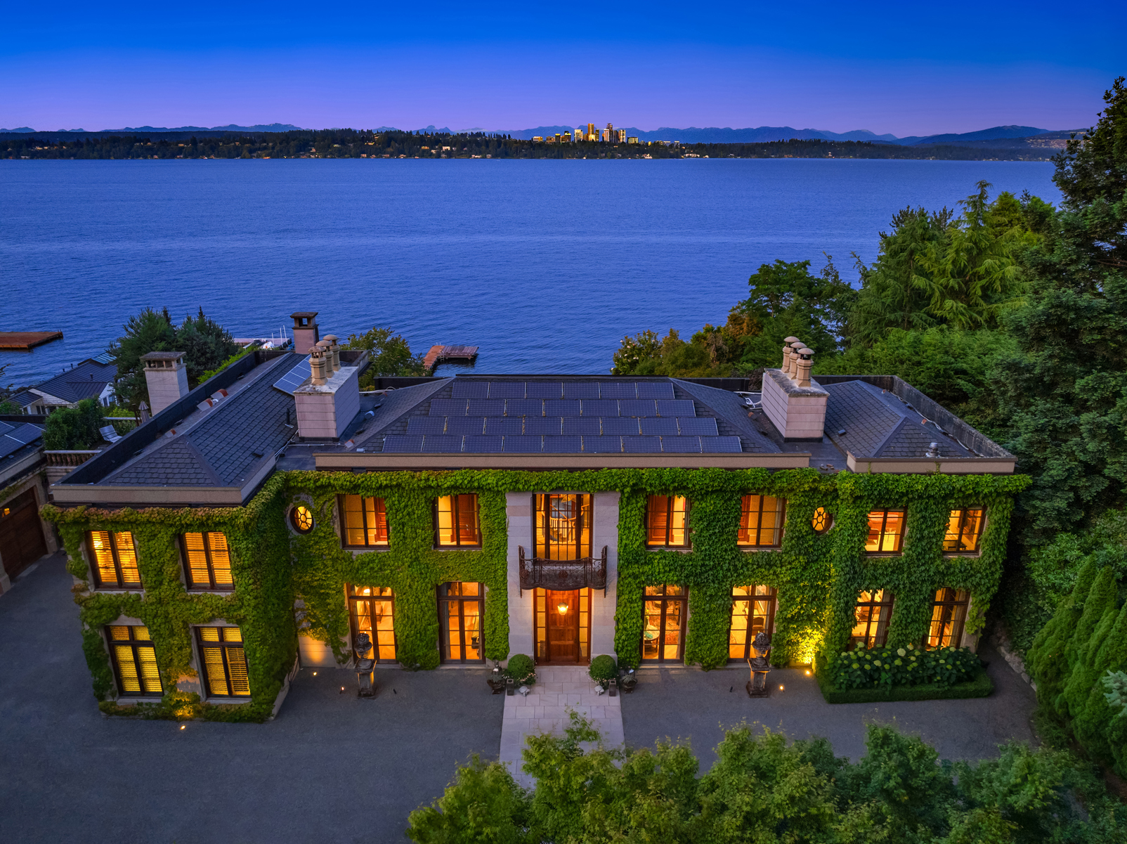This exceptional residence reflects refined Georgian sensibility with a deep respect for scale, proportion, and rich, enduring materials, yet functions flawlessly with regard to livability and daily enjoyment. Situated on the shores of Lake Washington, the lake, mountain and skyline panorama beckons from every room, terrace and garden. Tall symmetrical windows, 12 fireplaces, superb craftsmanship, gracious rooms with excellent flow, and inviting spaces. Seamless indoor-outdoor living offers a rare 160-foot natural pebble beach, boat dock, enchanting lakeside garden pavilion, swimming pool, spa, and entertainment terraces. It also has sustainable Geothermal and Photovoltaic systems.