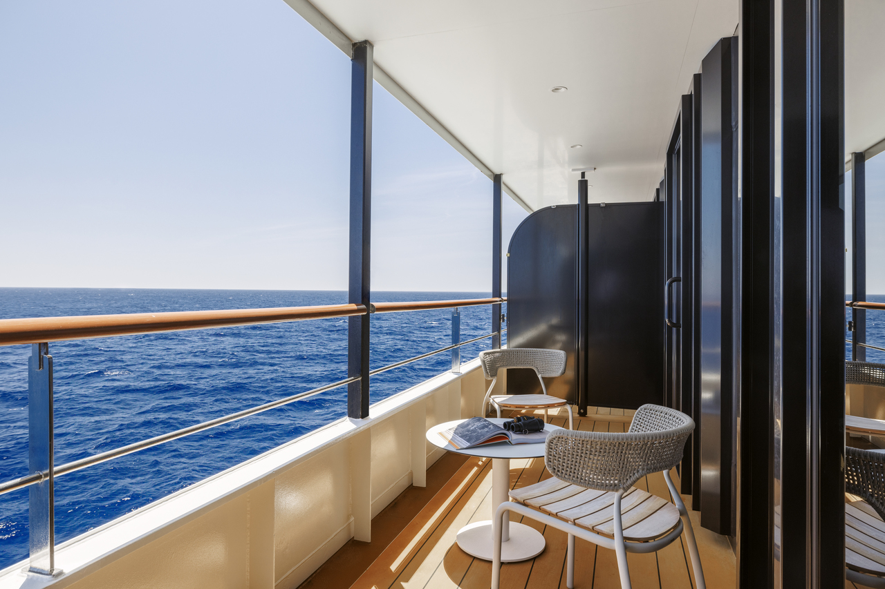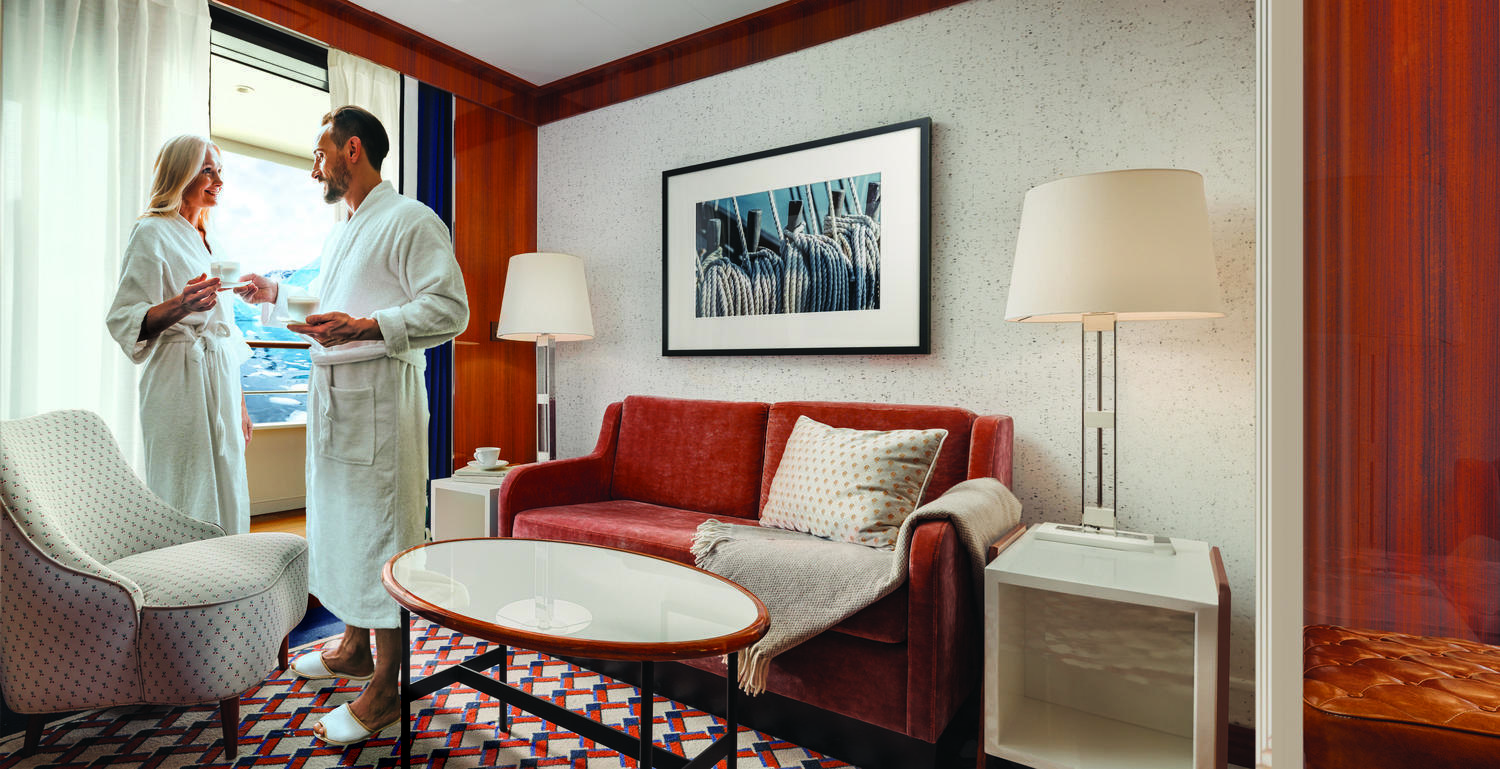 After a day of adventure, guests return to the serenity and comfort of their accommodations, with gourmet meals and 24-hour bar service. Suites and staterooms boast marble spa bathrooms, spacious living areas, and expansive ocean views from a balcony or panoramic window. Ever-changing menus feature globally inspired cuisine served in the dining room where guests can marvel at views of the scenic environment. Free champagne and canapés are served upon arrival, inviting guests to mingle and connect with fellow travelers.