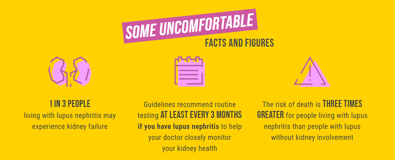 Lupus can affect many parts of the body including the joints, skin, brain, heart, lungs and kidneys. But when it causes inflammation of the kidneys, it's known as lupus nephritis. It’s estimated that up to 50% of people with lupus may develop lupus nephritis which can lead to kidney failure, increased blood pressure and cardiovascular complications like heart attack and stroke.