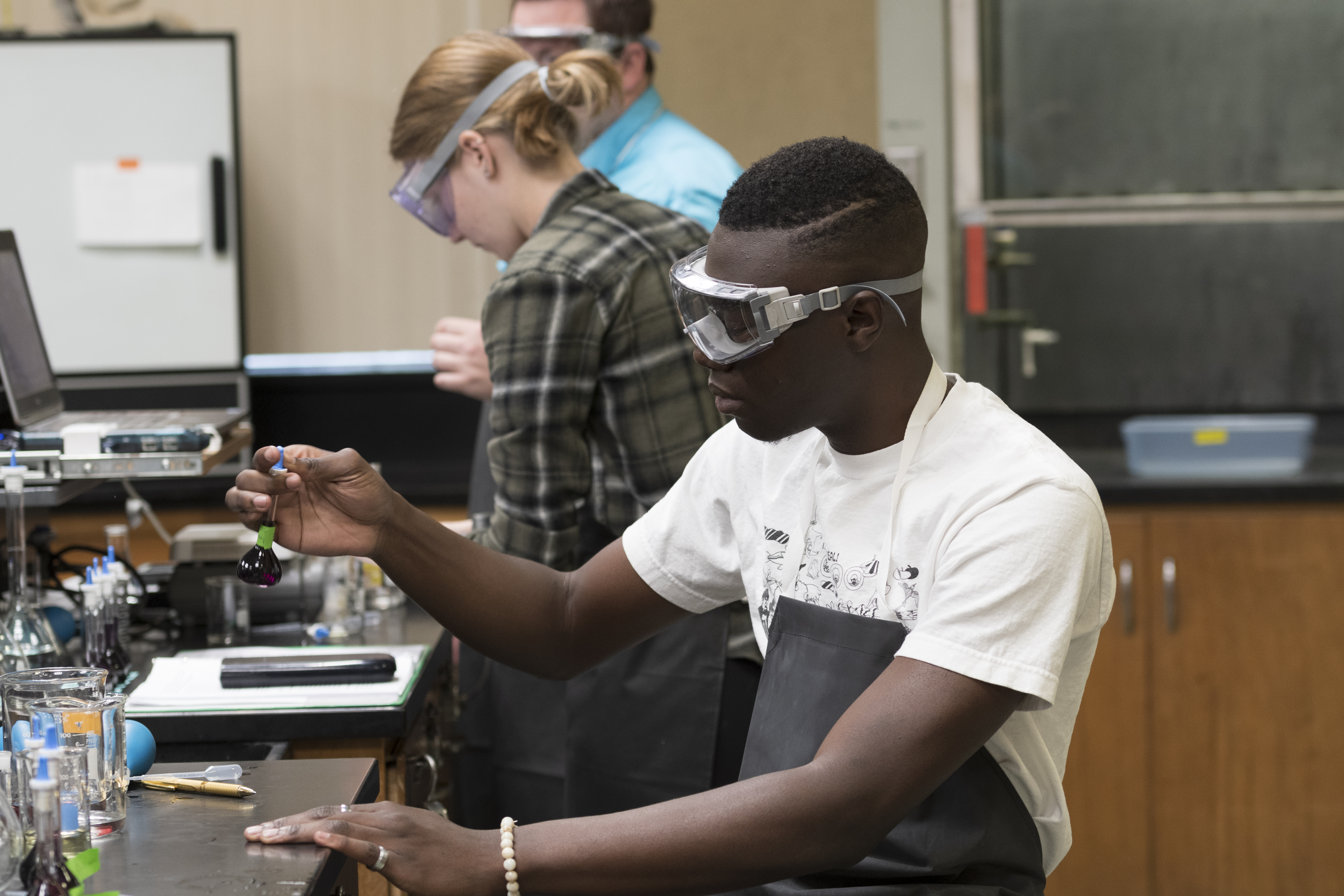 Santa Rosa Junior College students work in the chemistry lab.