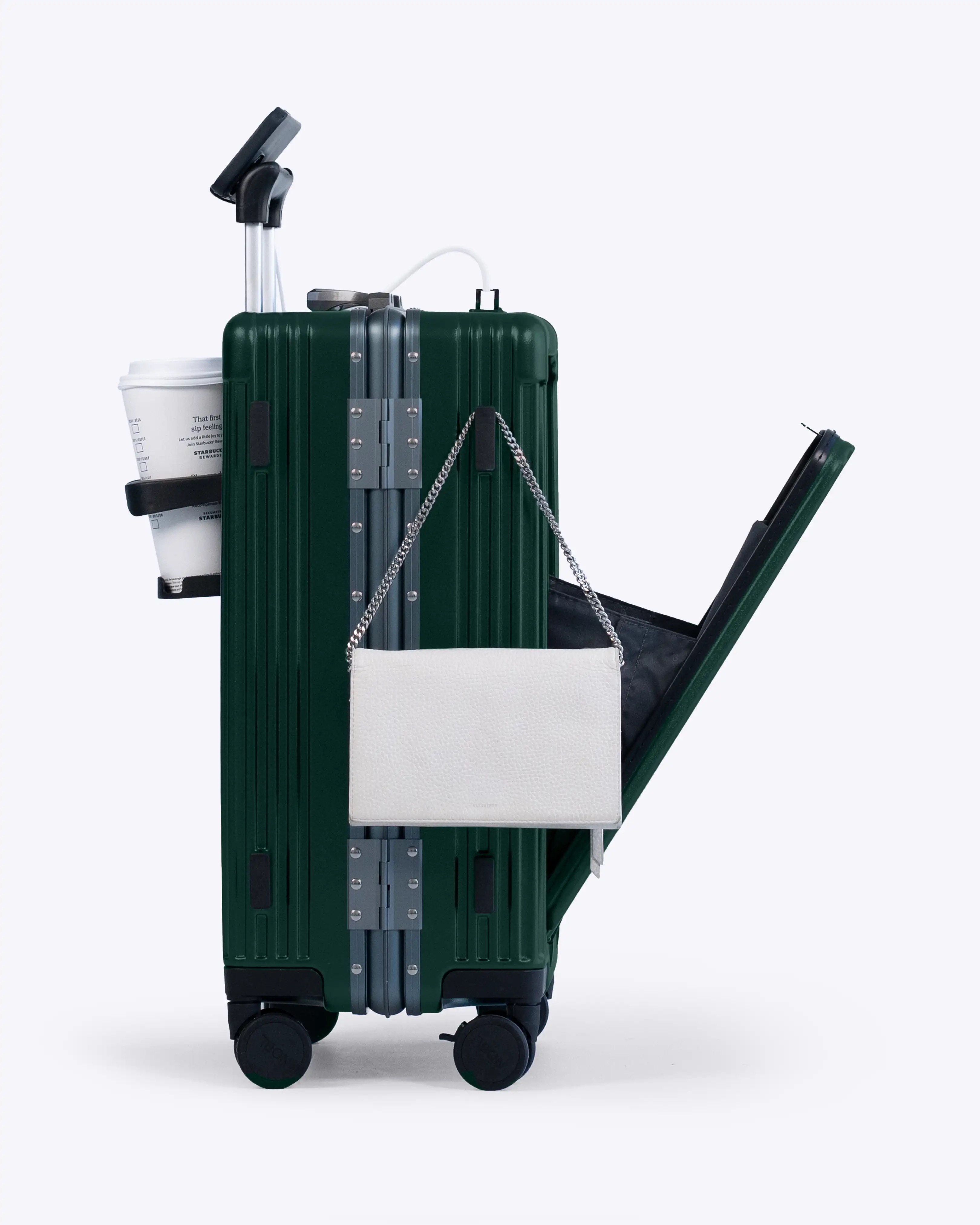 NOBL’s All-in-One Carry-On redefines what modern travel looks like. Designed with first-class innovation, it features a built-in phone mount with USB and USB-C charging ports, durable bag hooks, and an easy-access, TSA-friendly laptop pocket so you glide through security without slowing down. This award-winning, 360°-rolling carry-on fits seamlessly into any overhead bin yet offers space enough to keep you perfectly packed and polished. Engineered from aluminum and polycarbonate, it’s impossibly light yet nearly unbreakable. Thoughtful details, like a cup holder, passport sleeve, waterproof toiletries pocket, and triple-lock TSA security, prove that with NOBL, every inch is designed to make travel seamless.