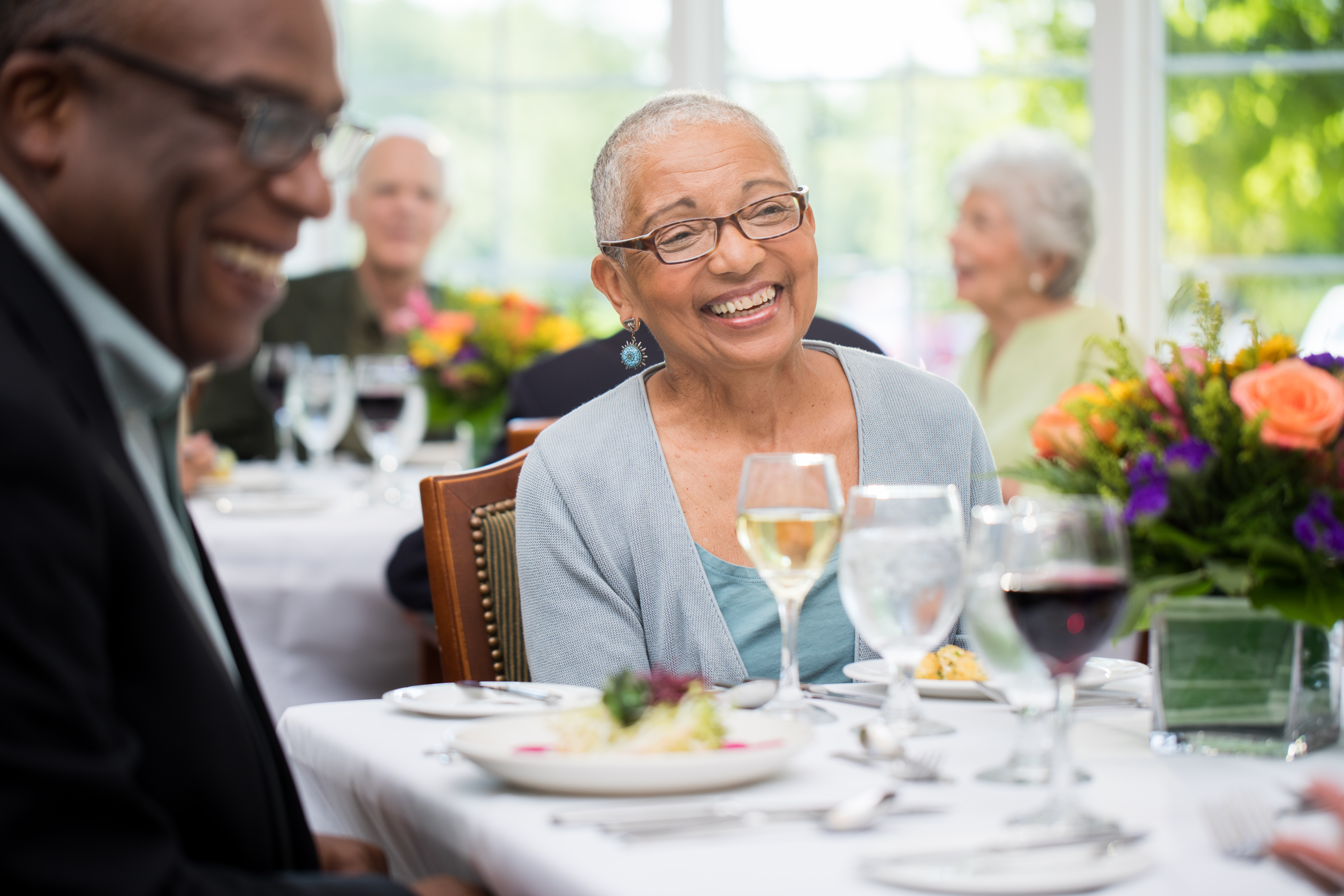 All this physical and mental activity builds up a mighty appetite. Fortunately, the Meadow Ridge dining program is equally outstanding. The casual bistro serves a daily soup, numerous salads, sandwiches and entrées like lemon-thyme half-roasted chicken and a weekly special. The more formal dining room also provides restaurant-level selections and service, including tend different entrées like black bass and citrus-glazed Cornish game hen, a la carte sides, and dreamy desserts. Both culinary environments are always abuzz with conversation, as is the popular outdoor dining during warmer months.
