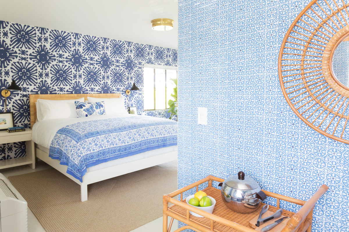 Posh 28-room Holiday House features the great bones of Burns’ original 1951 structures with interiors sumptuously reimagined by designer Mark D. Sikes. The property centers on a convivial bar with Gio Ponti-influence tilework, and a gallery’s worth of images by David Hockney, Roy Liechtenstein, Herb Ritts, Alex Katz and more.