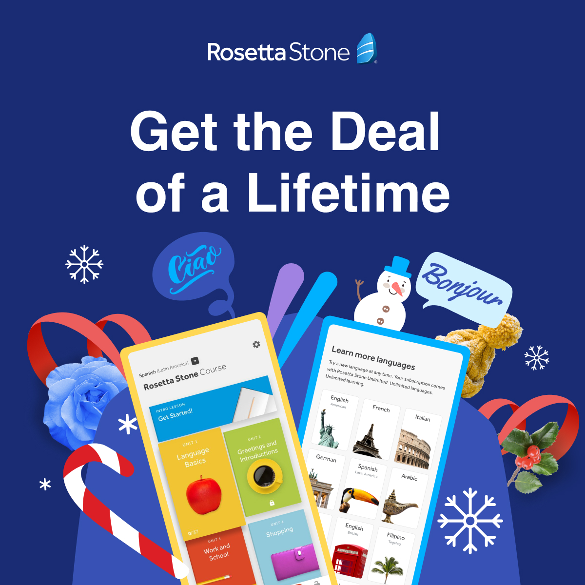 For more than thirty years, Rosetta Stone has helped over 50 million people open the door to new languages – guiding schools, workplaces, and individual learners as they discover new ways to speak, read, and connect. This holiday season, you can carry that tradition forward. Give someone you love – or yourself – the chance to learn without limits. With Lifetime Unlimited, the lessons never expire, offering a resource to return to again and again.