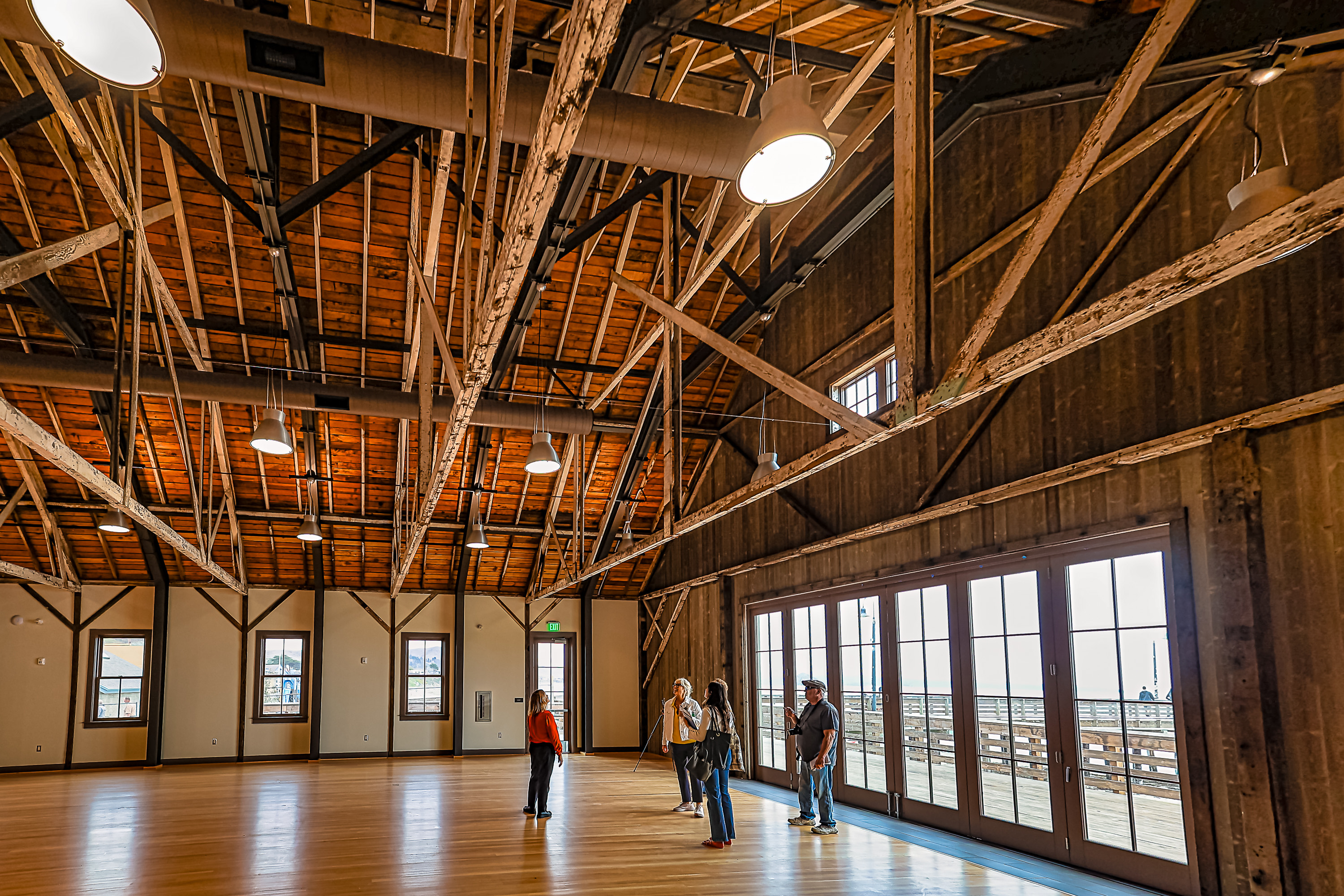 After 143 years of service, the building, which served as a community gathering place for many years as the "Cayucos Vet's Hall", was deemed structurally unsafe and closed in 2016. Thanks to a collaborative effort by California State Parks, San Luis Obispo County Parks, and generous community donors through the Cayucos Lions Club, this historic landmark has undergone an $11.3 million renovation that began in 2022. Local historians collaborated with the project team to ensure that this cherished community hub closely replicated the seaside town founder’s Cass Warehouse at Cayucos Landing, as the building was originally known. The grand hall features the original rafters and framing, as well as much of the old wood siding, a bell tower, and duplicated signage.