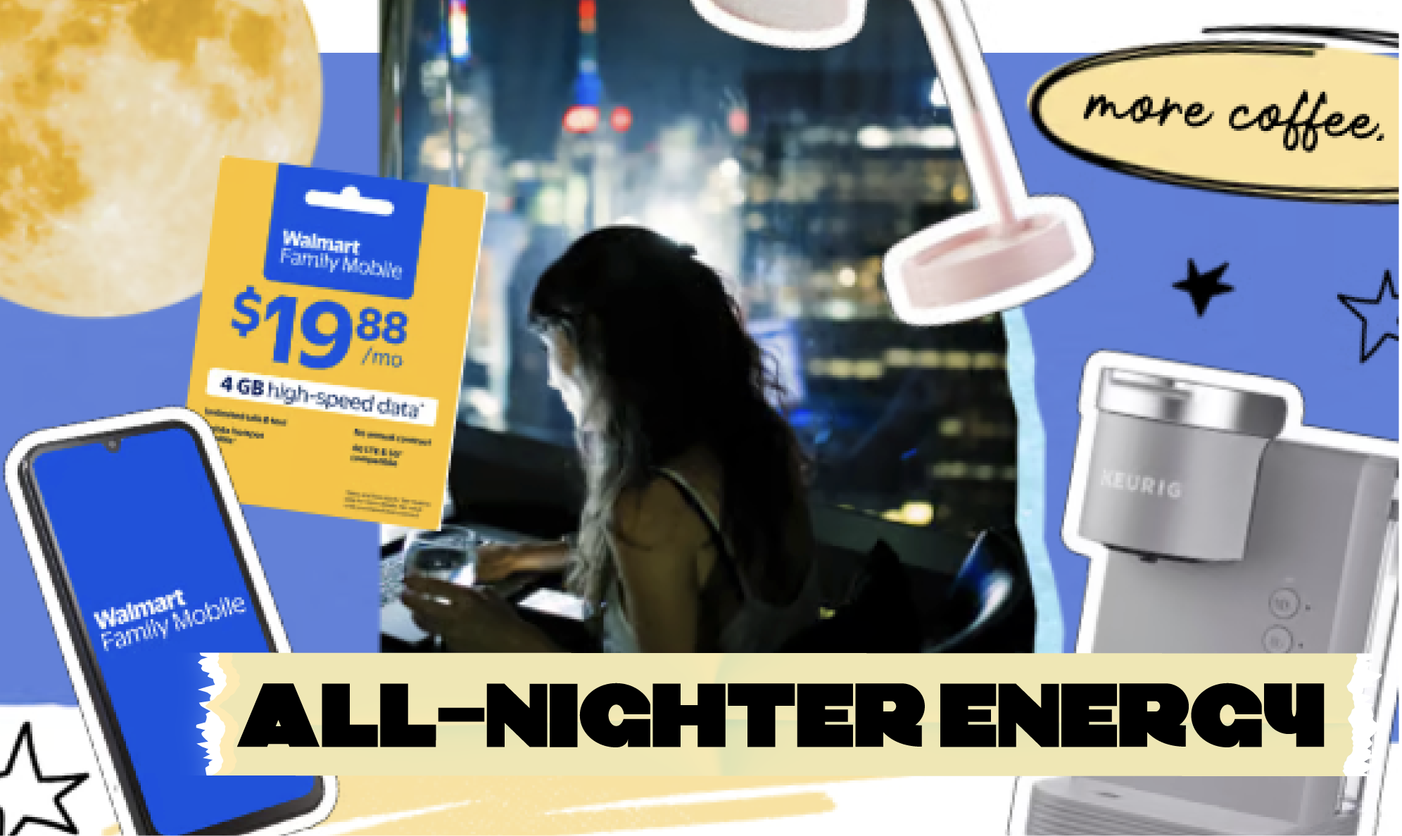 Late-night link up? More like late-night grind. You do your best work when the sun is down, the library is empty, and you’ve got the perfect low-fi playlist queued up on your Walmart Family Mobile Samsung Galaxy A15 5G. With your HP Omnibook 5 by your side, you’re locked in and tackling essays, exam reviews, and presentation slides all night long. When you need a quick reset, it’s a pit stop back at your dorm for a refreshing shower to wake you up. Pair that with (another) coffee from your Keurig® K-Iced Essentials® brewer, and you’re ready to dive back in — because sleep can wait until after this deadline.
