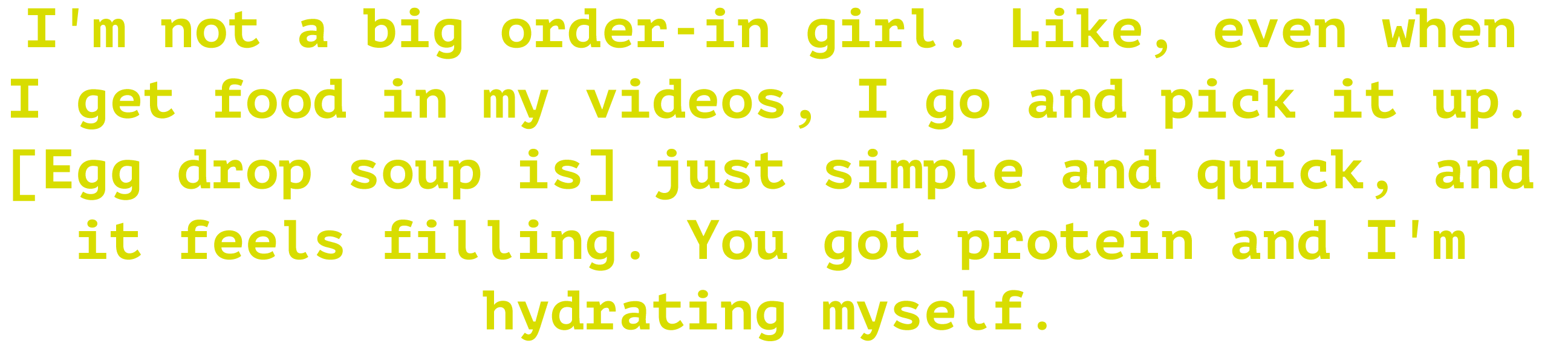 I'm not a big order-in girl. Like, even when I get food in my videos, I go and pick it up. [Egg drop soup is] just simple and quick, and it feels filling. You got protein and I'm hydrating myself.